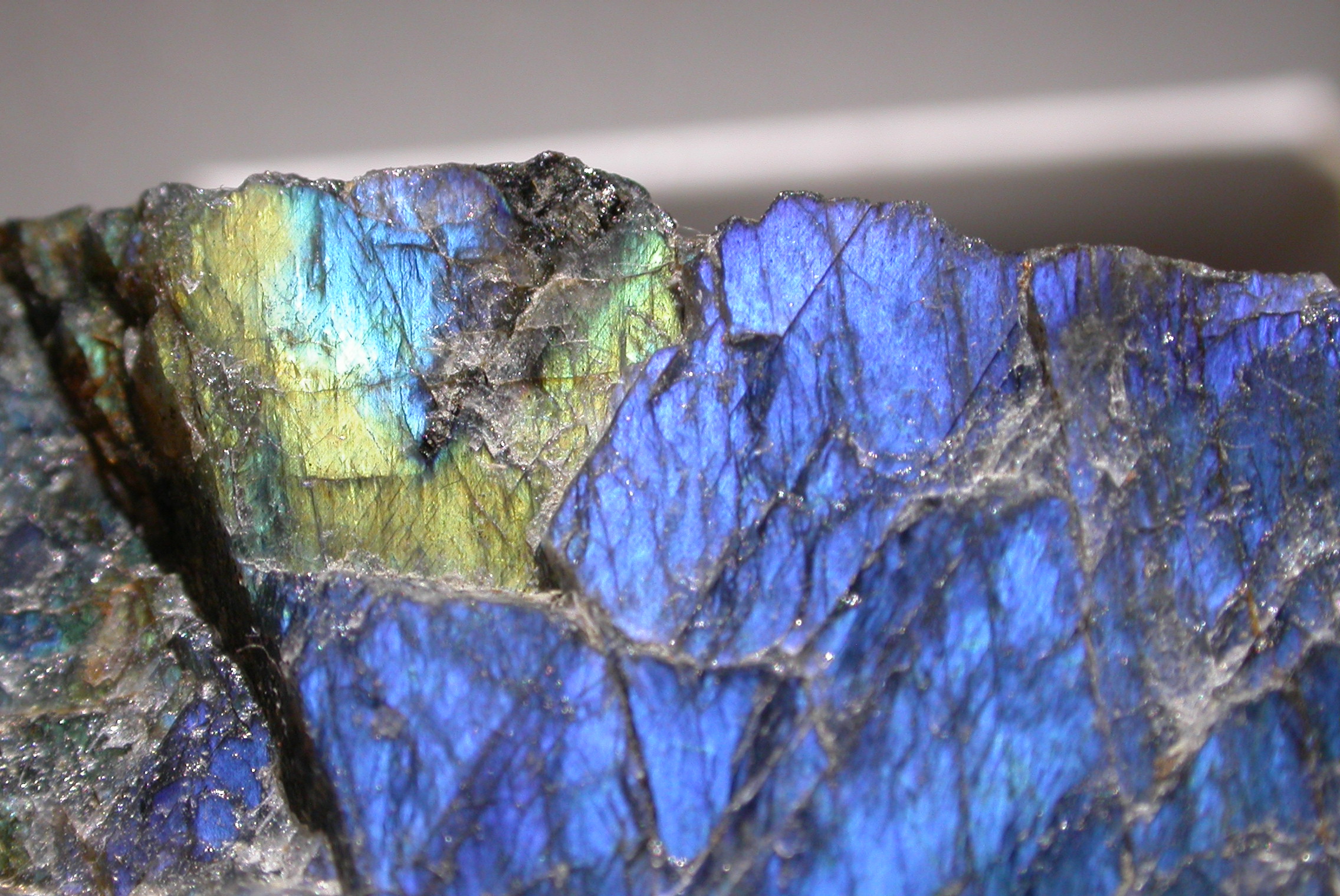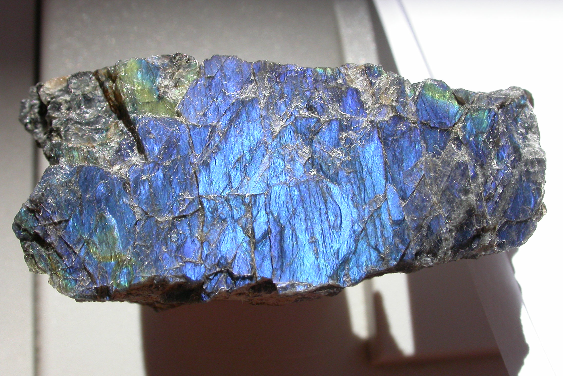 Nichtsdestotrotz kann in einigen Bereichen auch Labradoreszenz auftreten; diese ist jedoch gegenüber der Adulareszenz untergeordnet.
