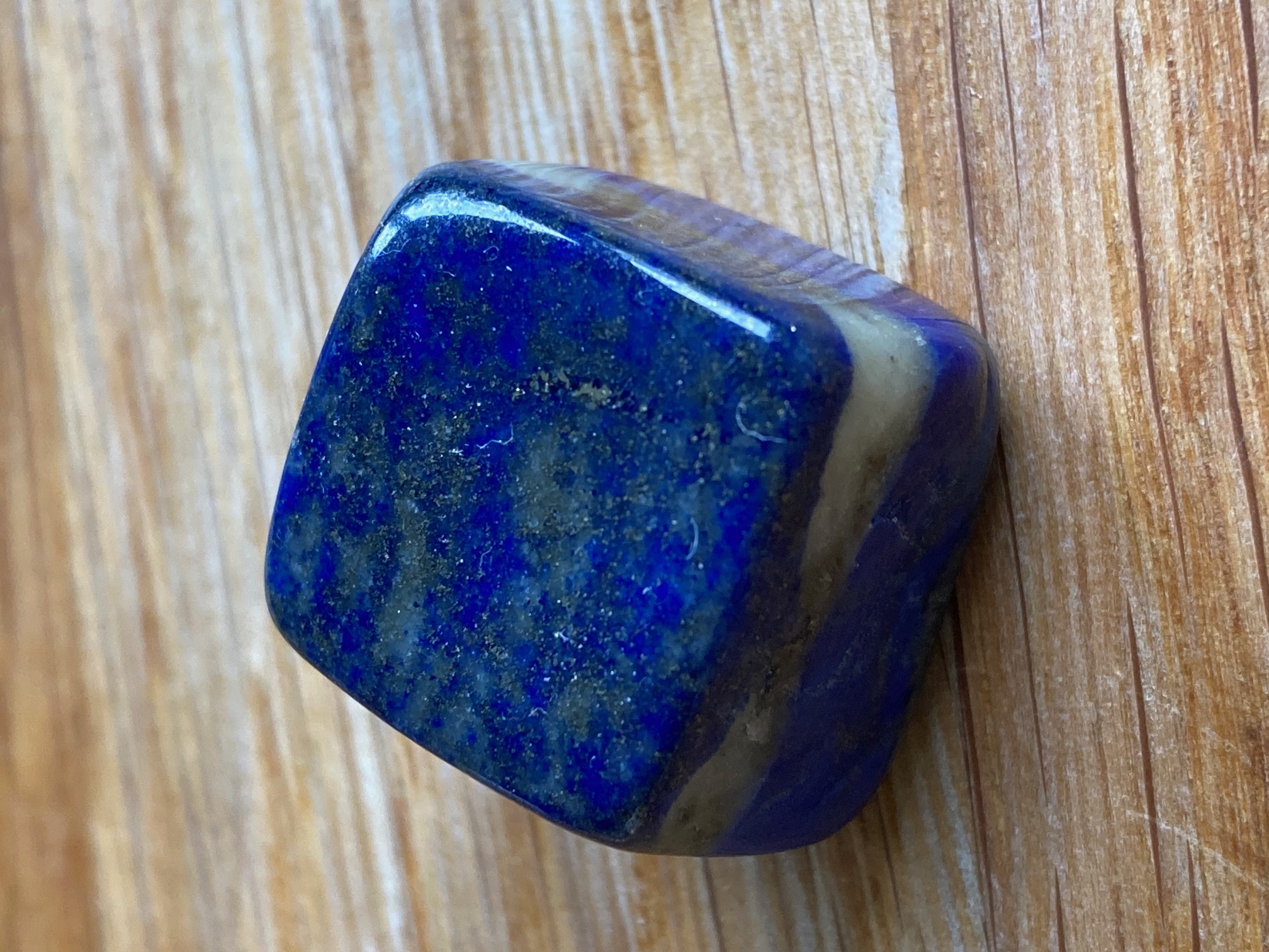 Ich habe hier ein Set Chakrasteine, wovon einer angeblich blauer Sodalith ist, er sieht mir aber sehr nach Lapislazuli aus. Sehr viel goldene Partikelchen.