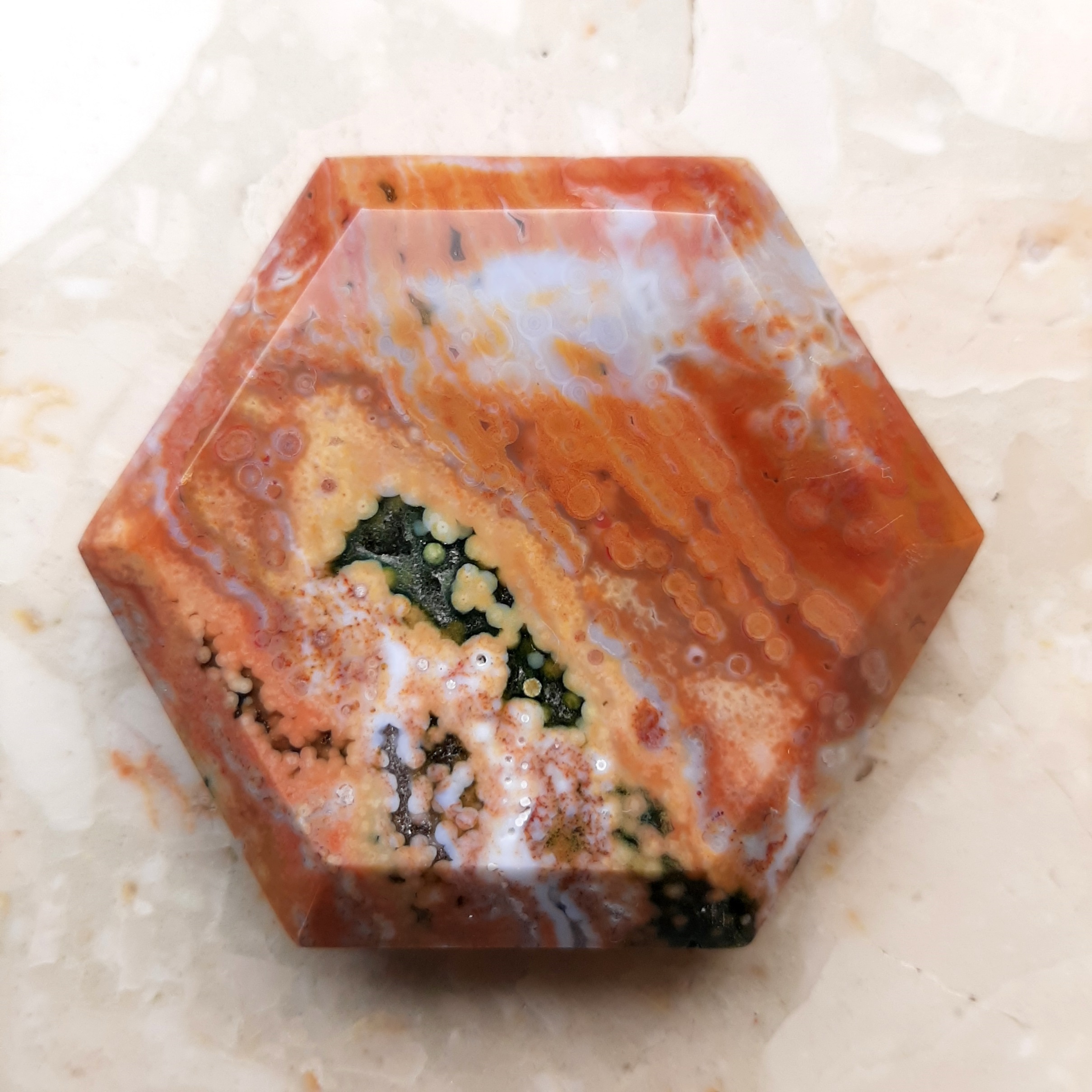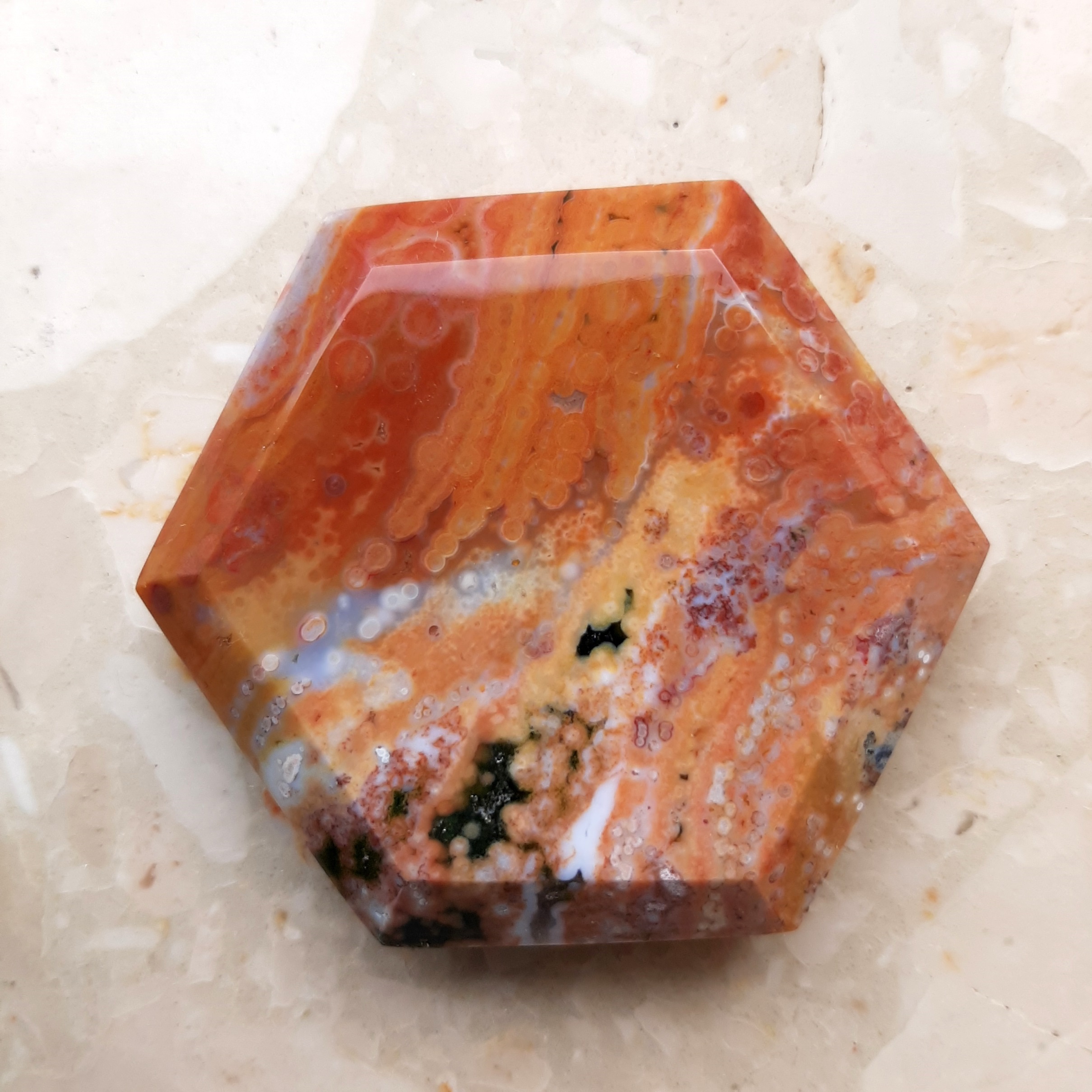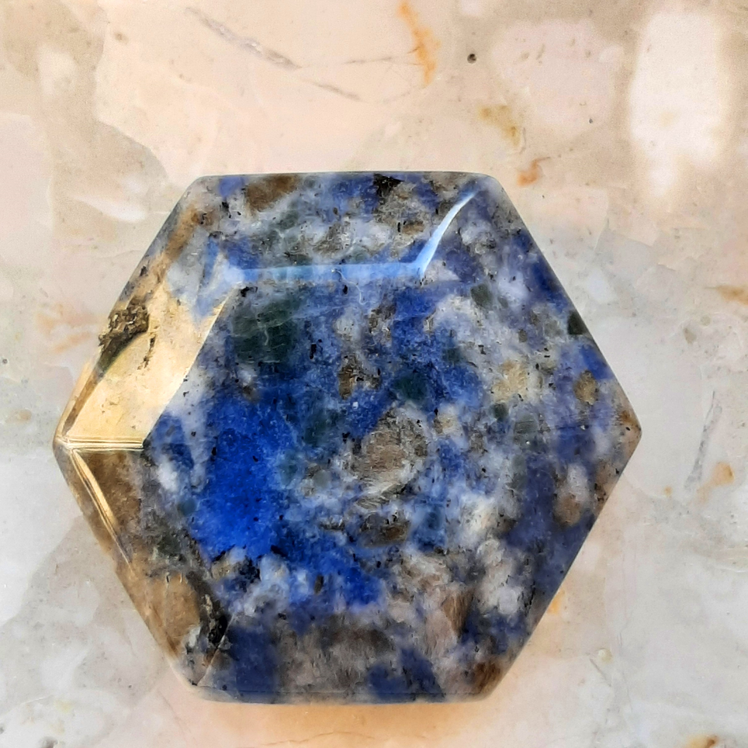 Die Sechseckform = Hexagon hat auch verschiedene spirituelle Bedeutungen, als Schutzstein z.B.