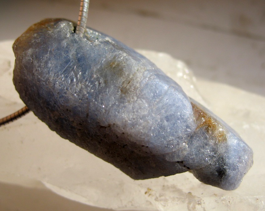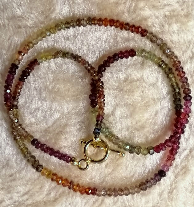 und nochmals ihn aufgenommen mit meiner selbstgefertigten Kette aus Saphir und rosa Spinell: