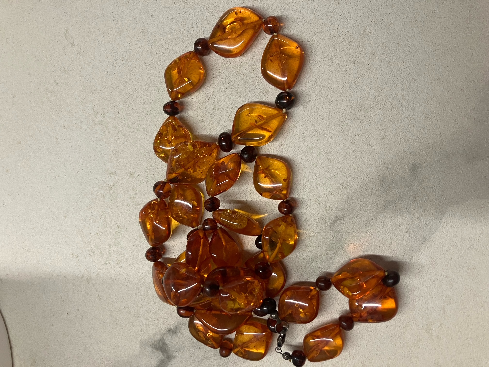 Vor circa 20 Jahren habe ich die Kette auf dem Bild als echte Bernsteinkette gekauft. Sie war damals schon sehr teuer. Irgendwie kam mir der Verkäufer aber nicht seriös vor.