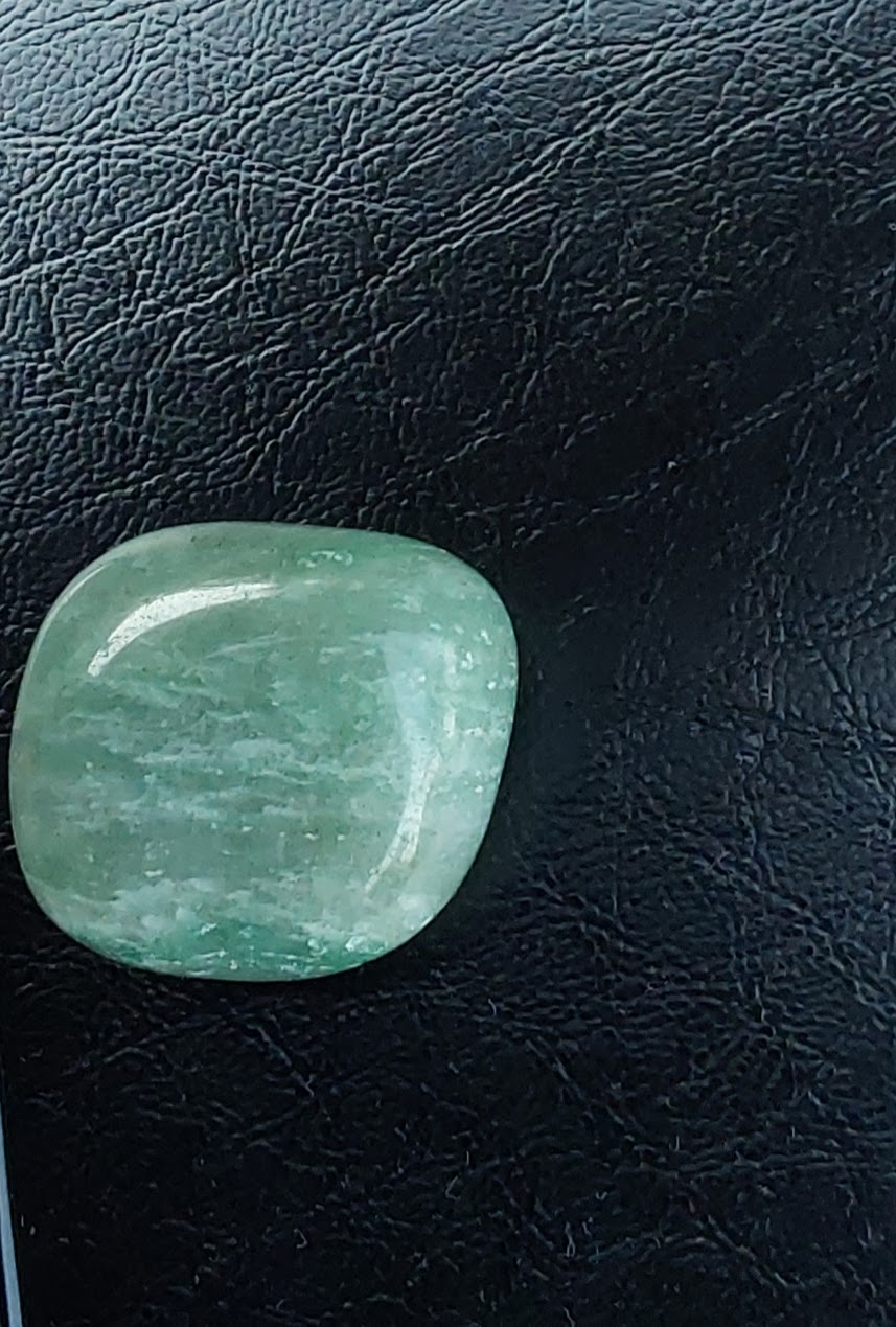Ich hab hier Aquamarin Trommelsteine, die sehen diesem sehr ähnlich. Kannst du an kleineren Stellen etwas in den Stein hinein schauen?