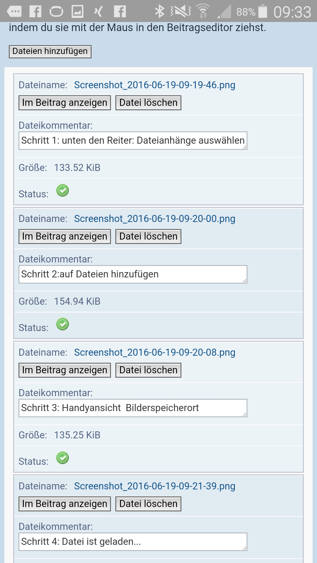 Dann drückst Du auf Dateianhängen, und dort kannst Du die Fotos hochladen.