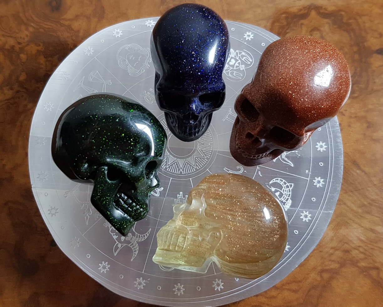 Es sind ja synthetisch hergestellte Steine, die ersten wurden in einem griechischen Kloster oder in Venedig hergestellt. Und zwar aus Quarzglas mit Kupfer. Später setzte man dann Kobalt, Mangan oder Chrom für Blau oder Grün zu. So wird auch der ganz helle Schädel etwas farbgebendes enthalten. Vielleicht Limonit?Verdita hat geschrieben: 06.04.2025, 16:10gute Frage, gibt es das ? Vielleicht ist der rot eher Rotfluss und der goldene Schädel unten Goldfluss.