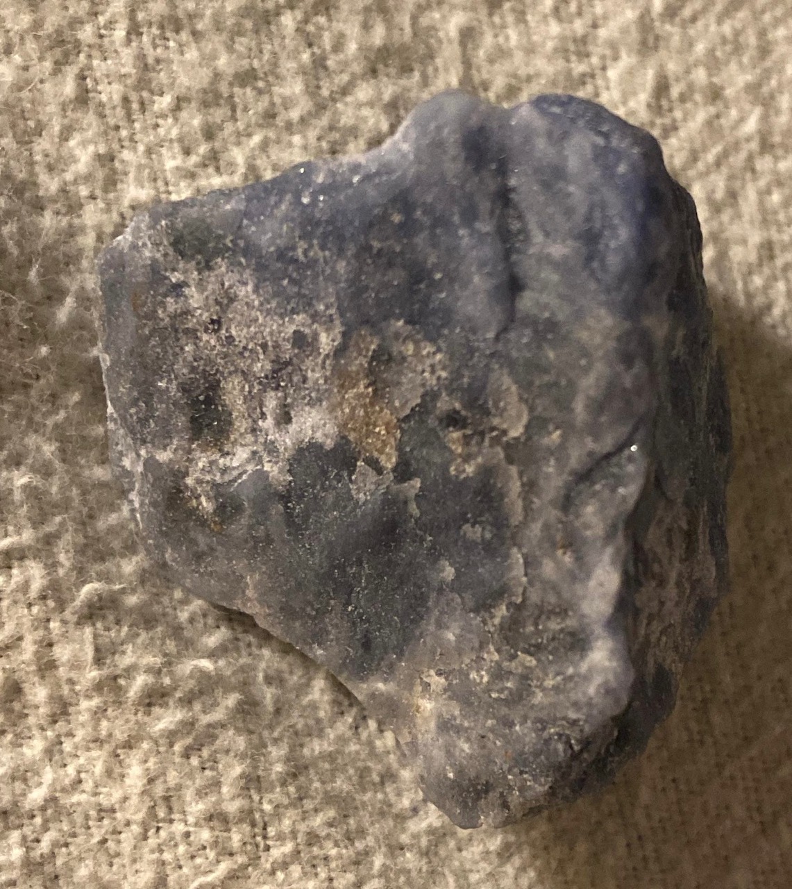 Ich habe an blauesn Calcit gedacht, aber blauer Aventurin/Blauquarz könnte es auch sein.