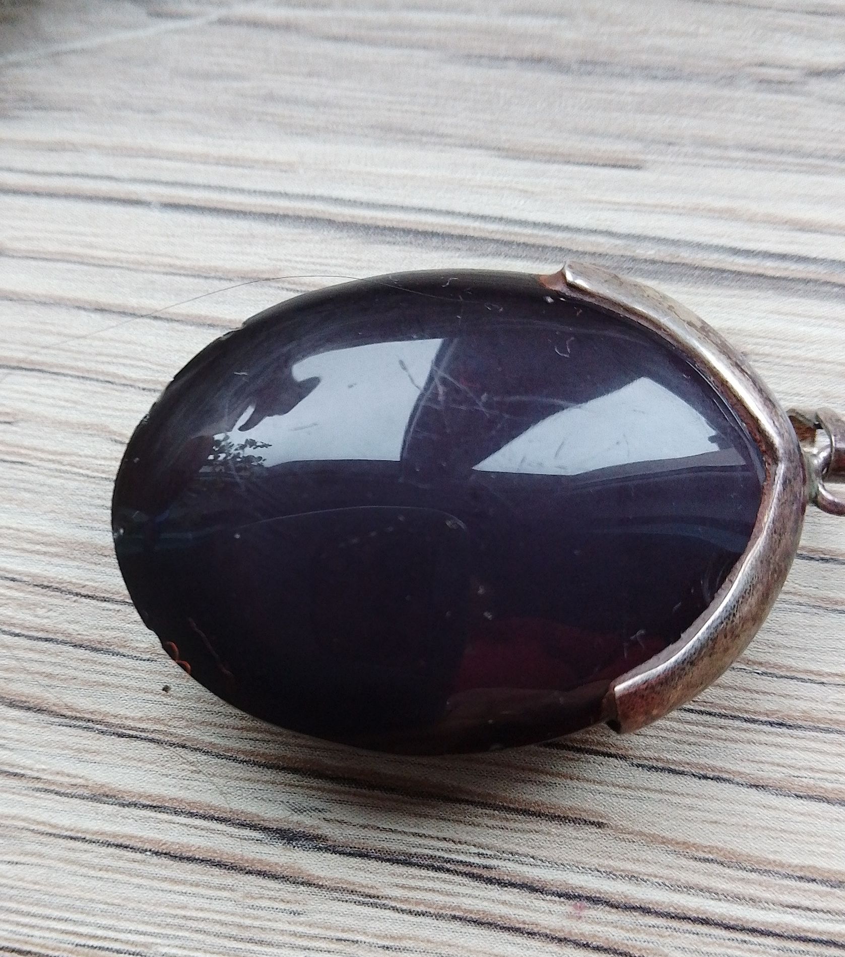 Mein Regenbogenobsidian, der wie ein Obsidianspiegel geschliffen ist.