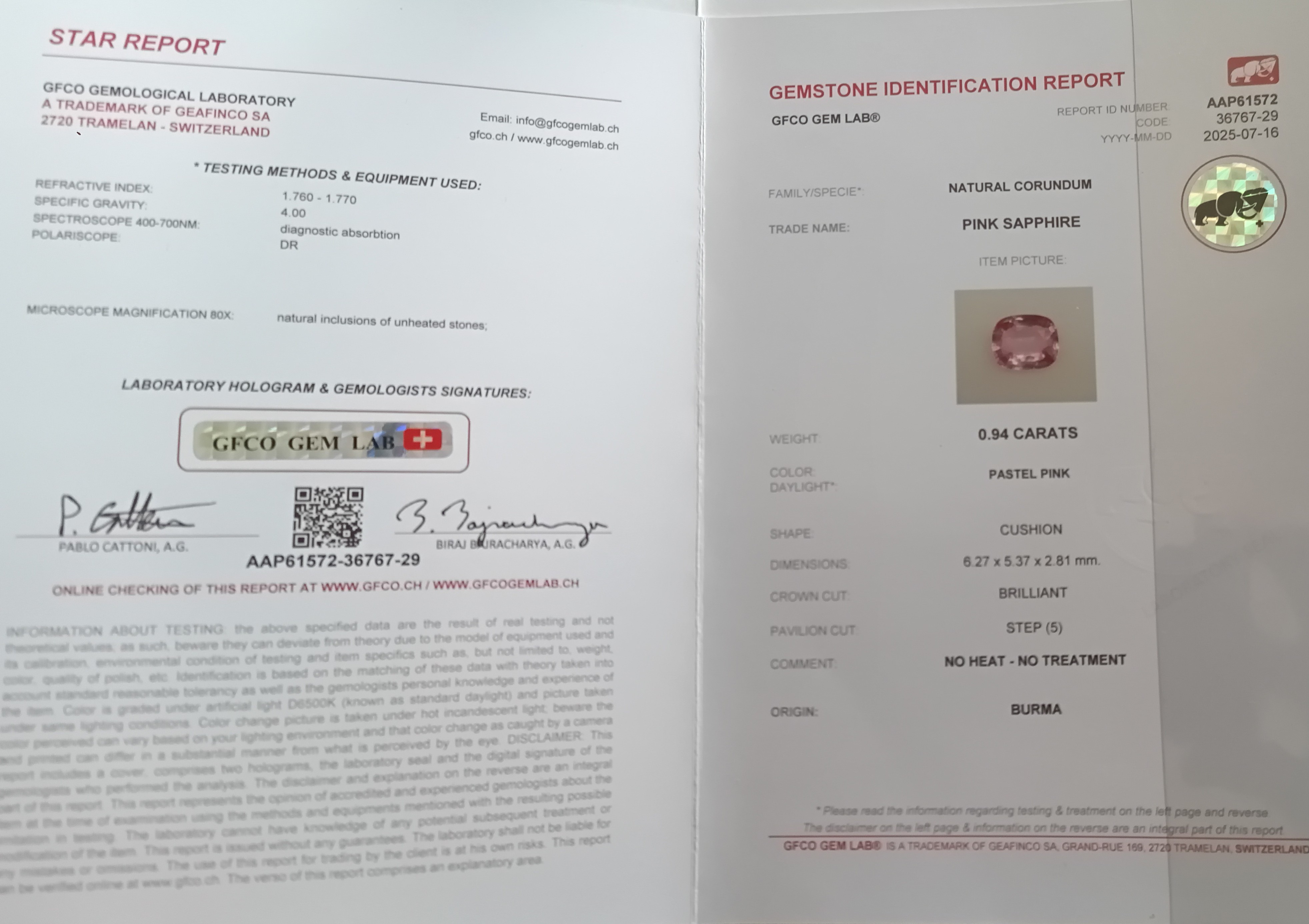 Zur Preislogik als grobe Plausibilitätsprüfung: „Gute“ unheated pink sapphires liegen schnell im vierstelligen Bereich pro Karat (je nach Farbe/Sättigung/Clarity/Origin deutlich mehr). Als grobe Hausnummer nennen Händler für gute, unheated pink sapphires z.B. ~€2200–3000/ct (nicht Burma-spezifisch, aber als Größenordnung brauchbar).