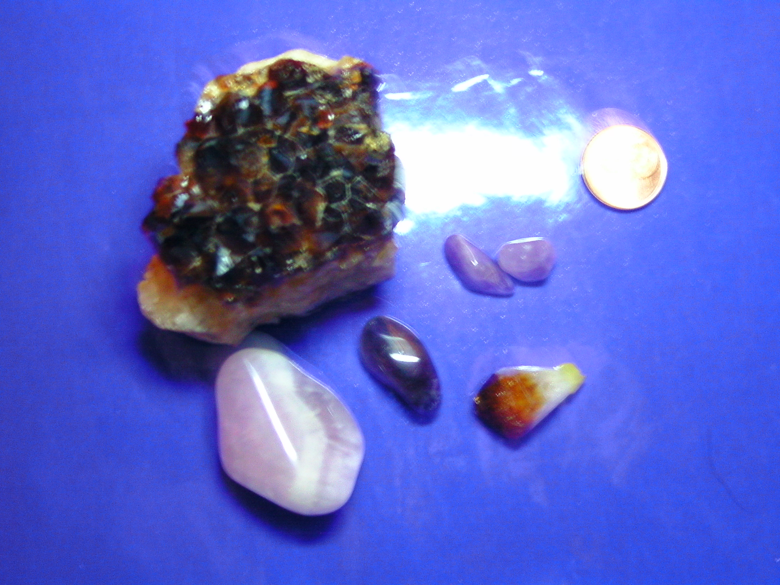 So jetzt zu meiner eigentlichen Frage. Ich habe das Gefühl das zumindest der Große keine Kraft mehr hat. Ich hatte ihn gester Nachmittag einige Stunde mit Hämatiten und Bergkristall in eine Schale gelegt. Und ihn vorher mit Wasser abgewaschen. Ich war nämlich extra gestern Mittag noch in einem "Steine"-Laden und hab mich beraten lassen.