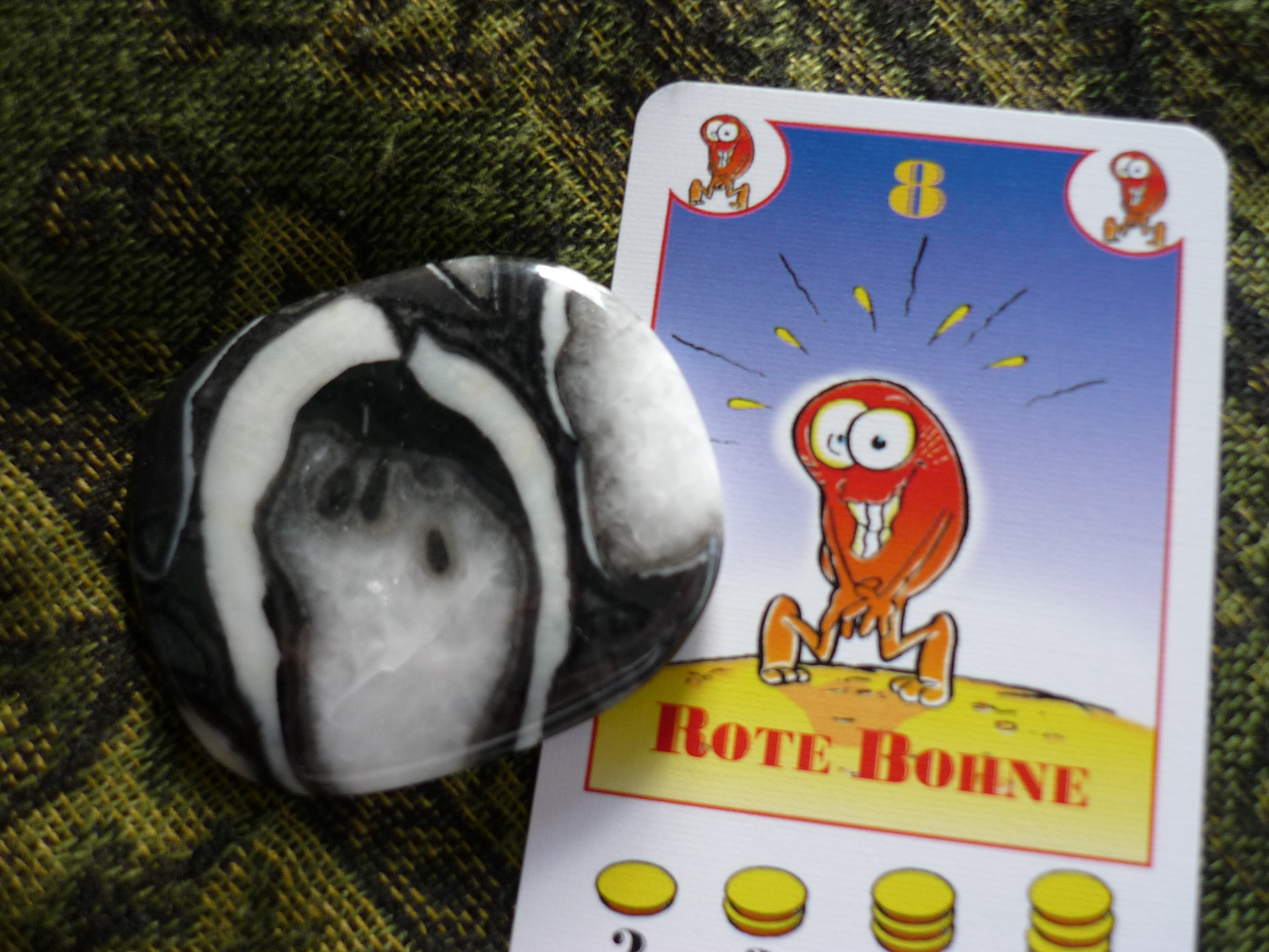 Ich selber muss auch jedesmal schmunzeln, wenn ich mir den Stein angucken. Die Ähnlichkeit ist echt verblüffend. Mal sehen, vielleicht wird das ja mein Bohnanza-Maskottchen. :lol: