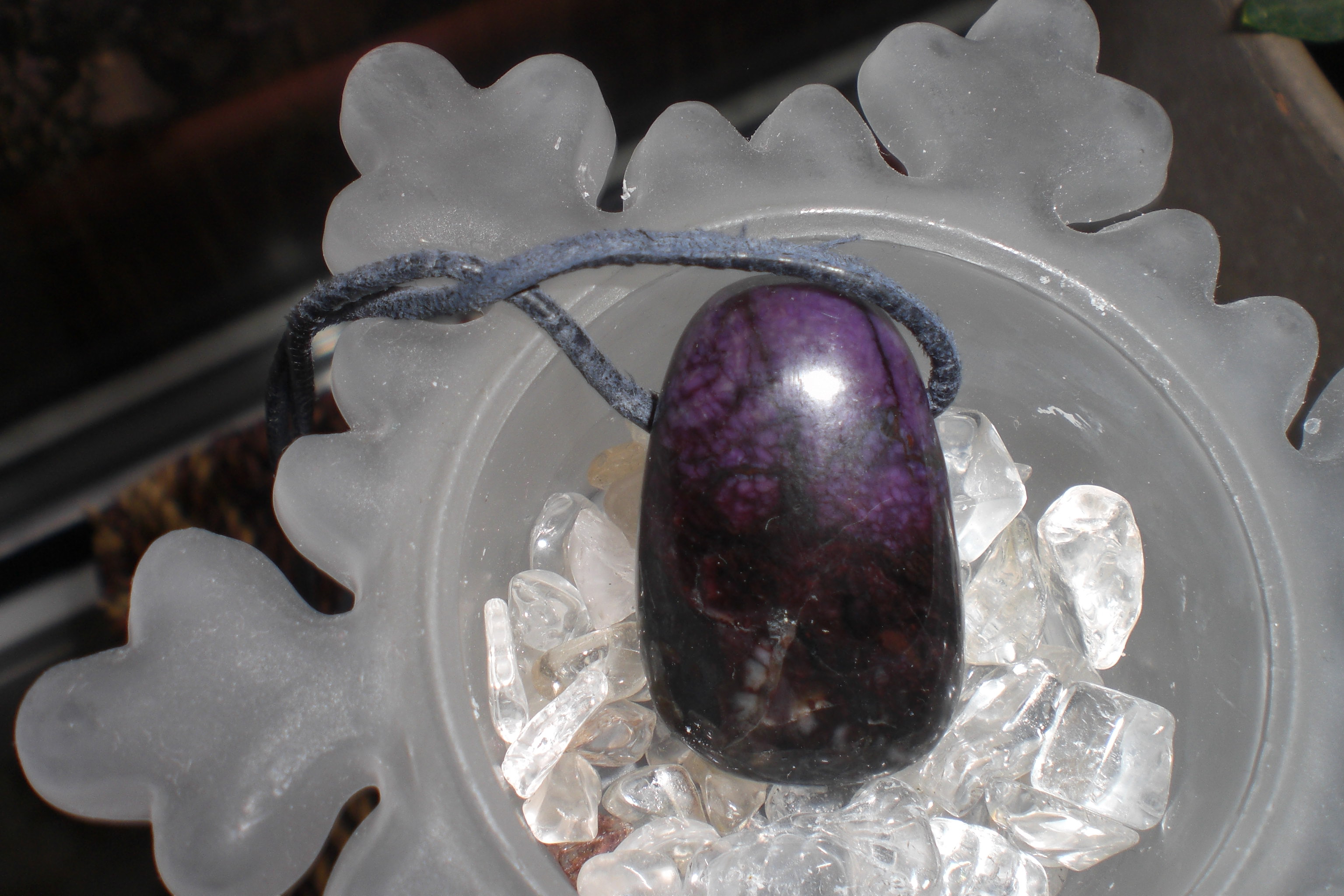 ein sehr schöner Stein, Sugilith ist auch einer meiner Lieblingssteine, auch weil lila drin ist, denn Lila ist auch meine Lieblingsfarbe. Fast alle meine Klamotten sind lila