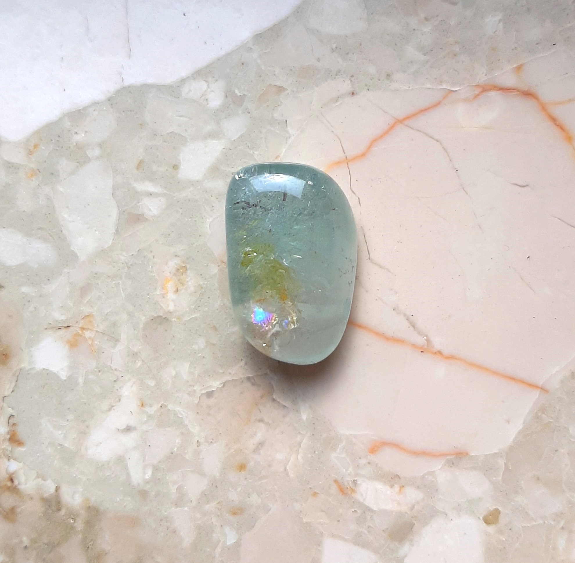 Wenn man ihn umdreht, wird ein Regenbogen sichtbar, schwer einzufangen mit der Smartphone Kamera.