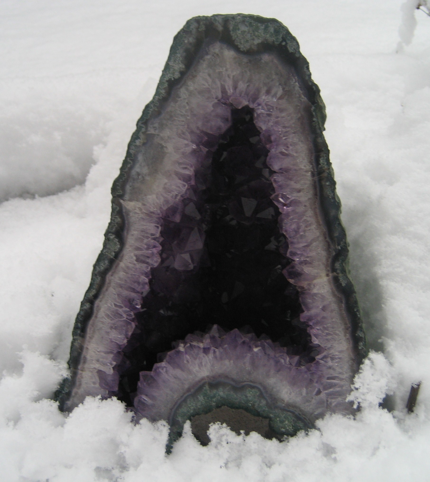 Hier hab ich mal eine "Stufe", bei der die Amethystkristalle einmal komplett herum zu gehen scheinen. Ich glaube, das nennt man Schwimmer?