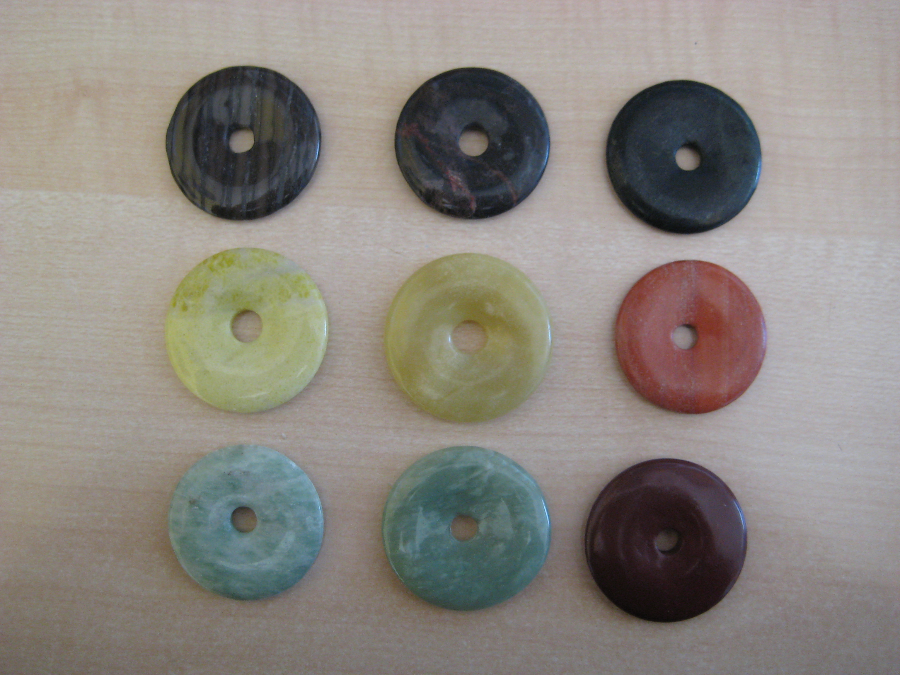 ich habe vor einiger Zeit ein Sortiment "Donuts" erstanden. Diese wurden als Halbedelsteine verkauft. Da ich aber von Edelsteinen nicht viel Ahnung habe, dachte ich ich frag mal die jenigen die sich mit sowas auskennen. Was sind das für Steine?