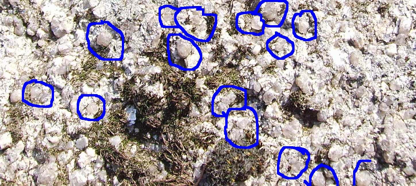 Da waren in der Nähe eines Parkplatzes etwa 50 cm Blöcke verschiedener Granite