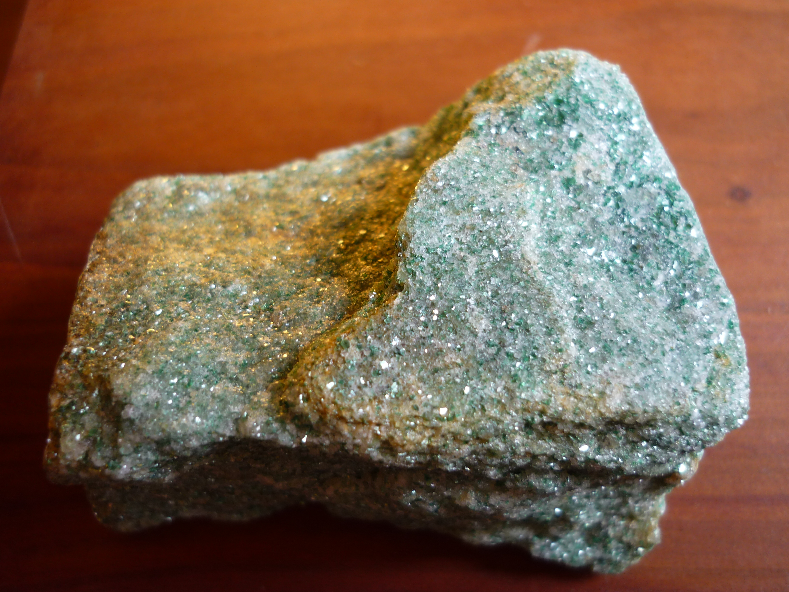 der 2. Stein sieht mir sehr nach Fuchsit aus,ich nehme auch an dass er an der Oberfläche durch den vielen Glimmer sehr porös wirkt.