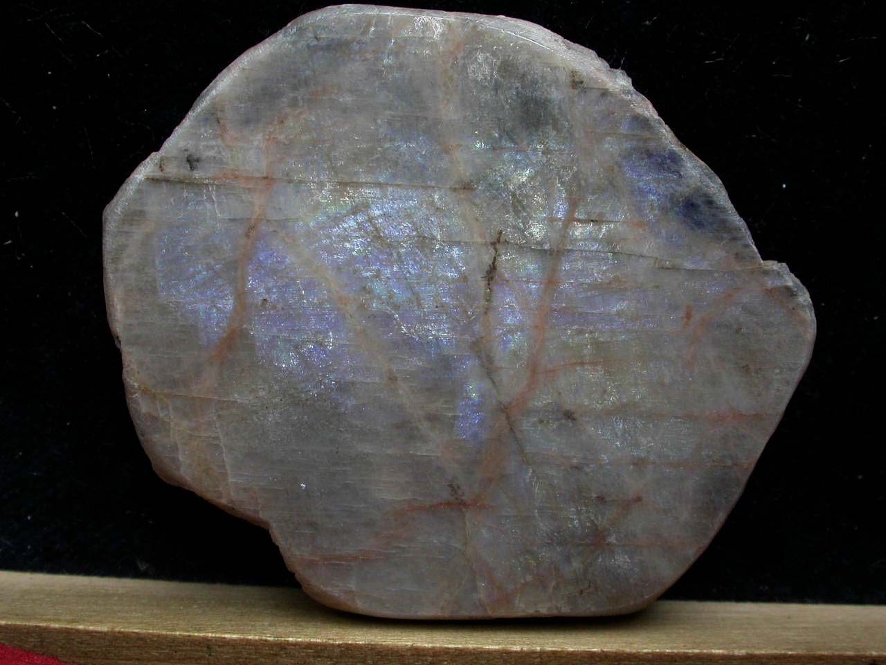 Es gibt tatsächlich Albite mit einem Adularisieren, die sollten dann aber Albit-Mondsteine heißen. Ich hab da keinen auf Lager (zu selten). Als Fundorte werden Pennsylvanien und New York angegeben. Ich hatte einmal mehrere "Madagaskar-Mondsteine" zum Untersuchen, wobei kein einziger ein (weißer) Labradorit war sondern alles Andesine und hauptsächlich Oligoklase, einen hätte ich schon zu den Albiten gezählt (auf Grund der Dichte und des Brechungsindex). Nach außen schauten sie alle sehr ähnlich aus, eben wie "Madagaskar-Mondsteine", weiß bzw. farblos mit einem deutlichen Labradorisieren und einem mehr oder weniger starkem Adularisieren.