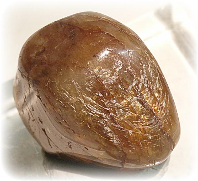 Der Stein kommt aus den USA und hat neben seiner braunen Farbe auch eine leichte Transparenz.