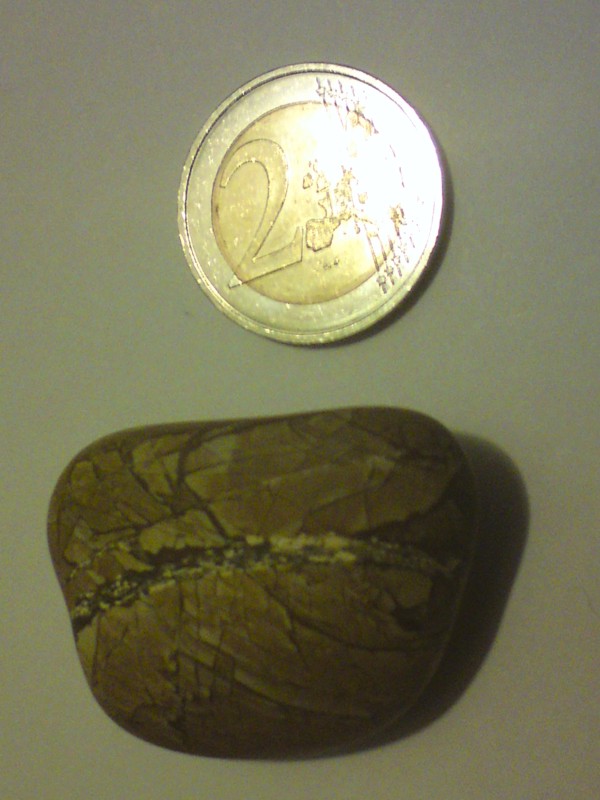Hmmm, danke für eure Vorschläge, aber an Landschaftsjaspis glaube ich irgendwie nicht (den Namen hätte ich mir nämlich merken können :lol: trotz auslaufendem Gedächtnis :wink: ). Irgendwie passt die fast wie mit einem Lineal gezogene, geometrische Zeichnung des Steines nicht dazu...