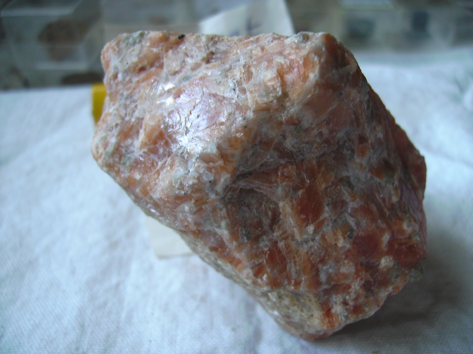Heute habe ich noch einmal Bilder von dem oben schon abgebildeten Stein und einem neuen sogenannten Sonnencalcit, ich denke, es ist ein Feuercalcit? , gemacht, so zum Vergleich:
