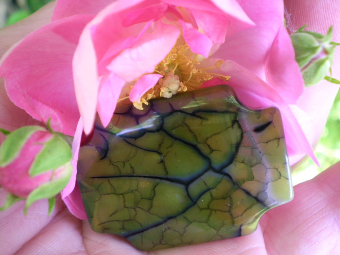 Demnach müsste also ein Schlangenhaut/Drachenhaut Achat/Jaspis zwar ein echter Stein sein, aber einer, der behandelt und gefärbt wurde.