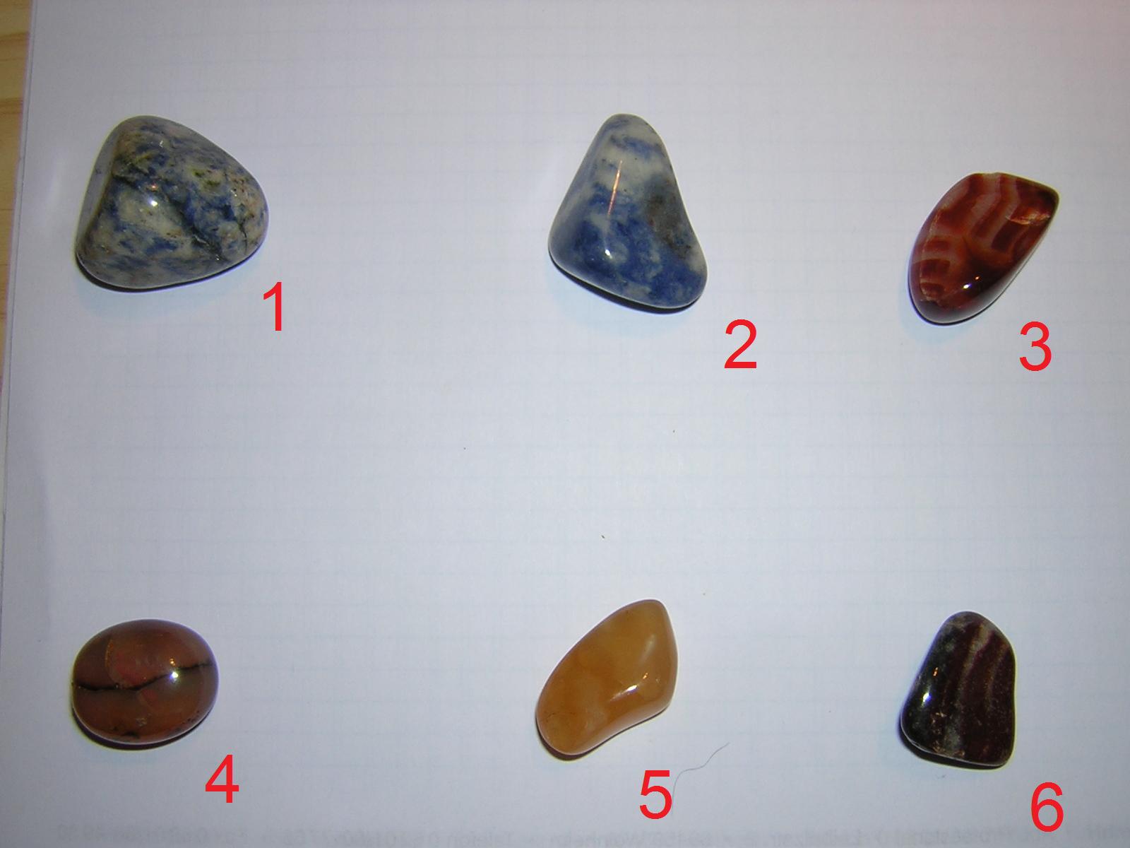 3 vielleicht Citrin, 4 Achat, 6 Citrin