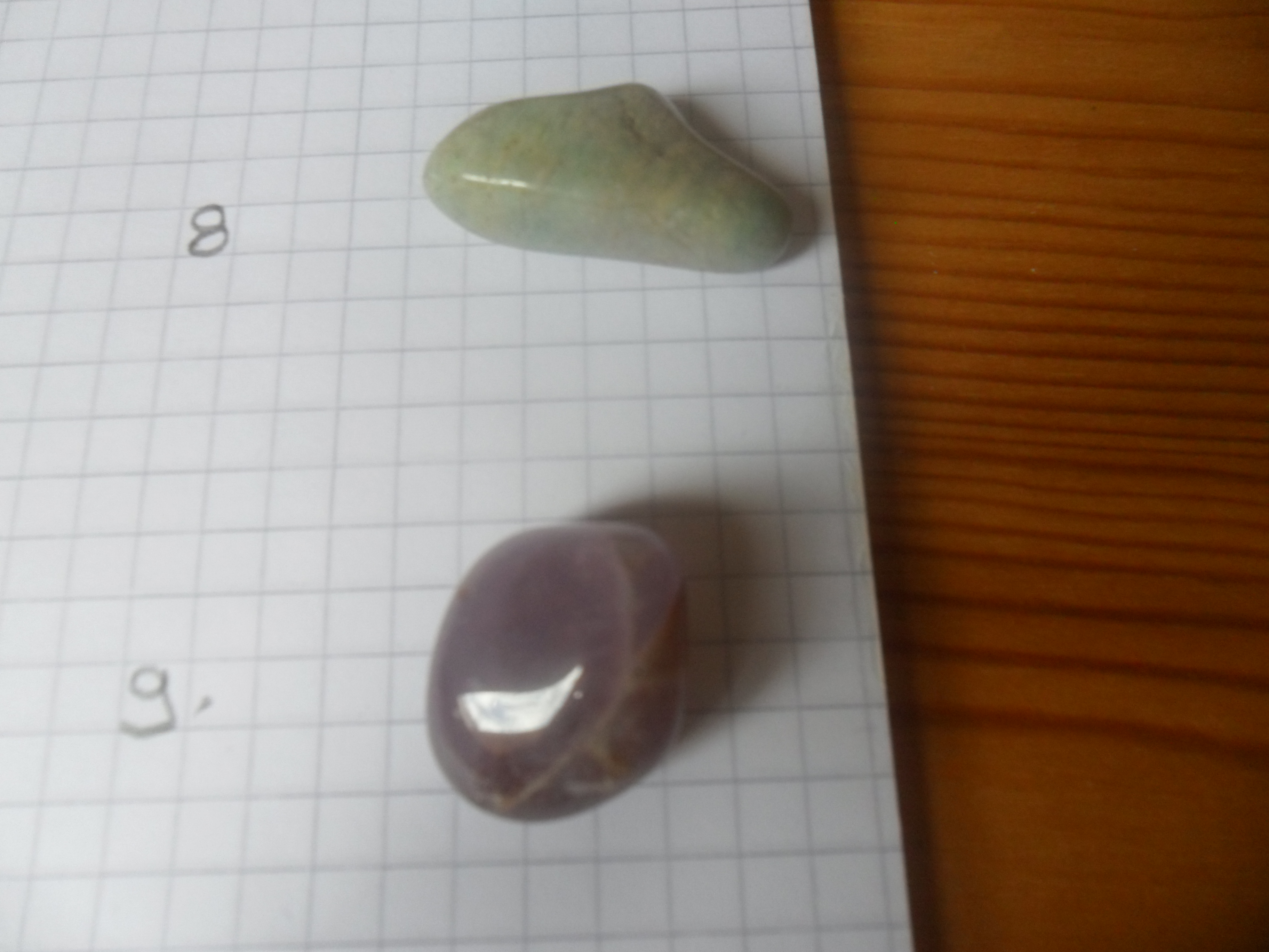 7. könnte imo wirklich gut Aventurin sein. Est dachte ich evtl. grüner Chalcedon, aber diese Braunfärbung an der einen Stelle habe ich auch bei einem meiner Aventurine.