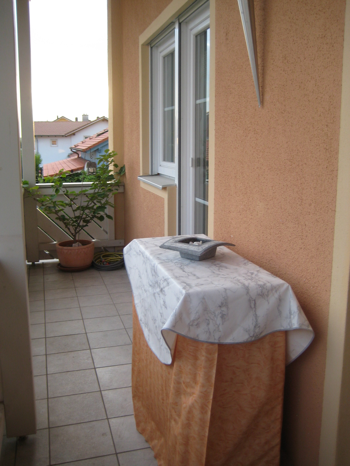 Wegen der Morgensonne - unser Balkon ist tatsächlich ziemlich exakt in Ost-West-Richtung gelegen zum Osten hin noch völlig unverbaut, so dass die Morgensonne auch noch auf dem Balkon ist. Nicht vom allerersten Strahl - aber doch recht bald.
