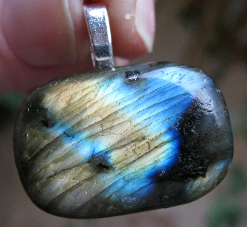 Heute habe ich diesen Labradorit beklebt, den ich gerne als Anhänger wollte. Ich habe ihn mit Absicht so beklebt, dass er quer statt längs am Körper anliegt.