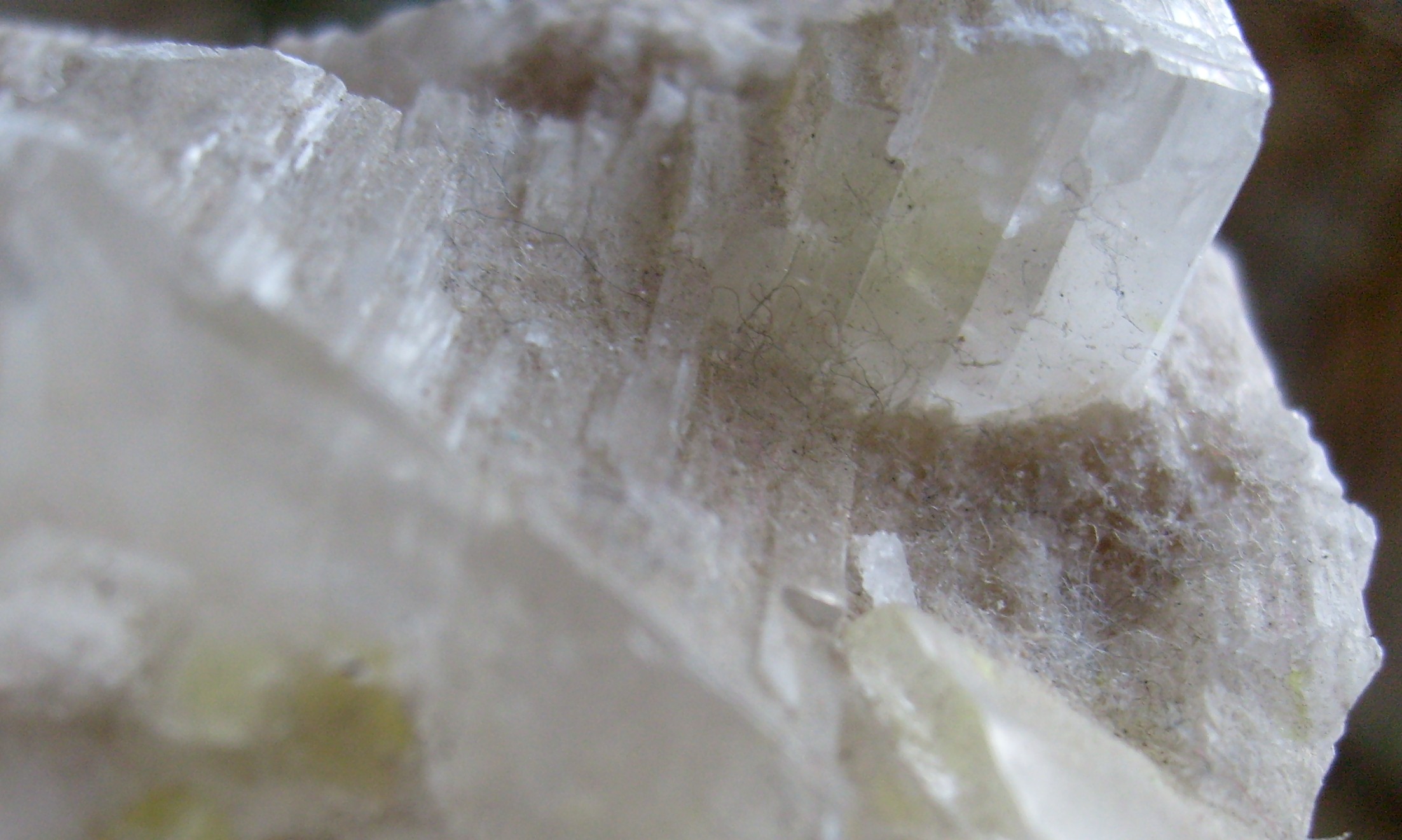Verbandelt sich Selenit mit Schwefel? Ich wollte einen Fussel auf der Stufe entfernen und stellte fest, dass sie sehr weich und etwas bröselig ist. Die Kristalle sehen teilweise aus wie Selenit.