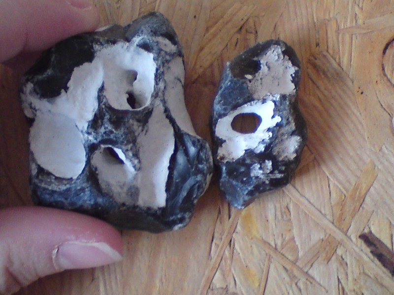 Hier sind die gesammelten Werke: Diese Schätzchen bringe ich meiner Mutter mit, sie mag diese "Steine mit Loch". Nennen die sich jetzt Hühnergott oder habe ich da etwas durcheinander gebracht? Hier ein mir völlig Unbekannter, bei dem ich den dumpfen Verdacht habe, dass er irgendwie aus Zement gegossen ist... ich fand ihn trotzdem ganz interessant, weil er so deutliche Linien darin hat