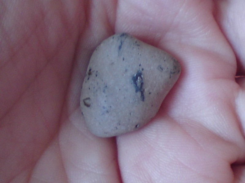 Wenn mit tatsächlich nur ein einziger Stein in die Hand gespült worden wäre, wäre das bestimmt ein Zufall gewesen, aber wie kann es sein, dass dieser Stein ein durchgehendes, schmales Loch hat, sodass er wie ein Kettenanhänger getragen werden kann? Dies hier ist er, eine kleine Diva, leider sieht man das Loch nicht so gut... wisst ihr, was es für ein Stein sein könnte? Ist er auch ein Feuerstein? Es war ein sehr schöner Tag am Meer, das Wetter war so schön, es hat sich auf jeden Fall gelohnt