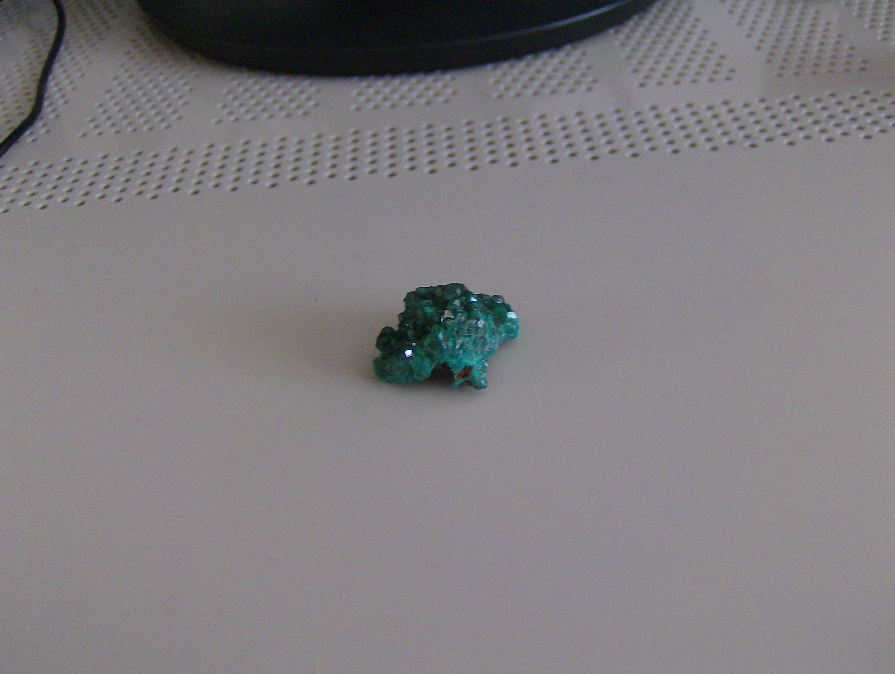 Also für mich schaut es aus, wie ein Dioptas. Schöner Kristall! Gefällt mir sehr gut.