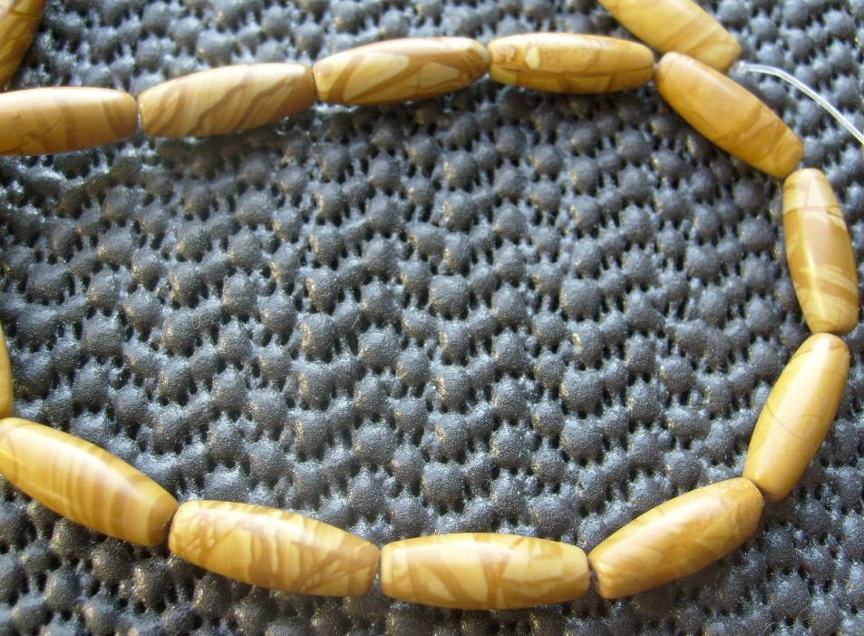 Gekauft habe ich die Stränge im Ausland als Gold Lace Agate, also als Achat.