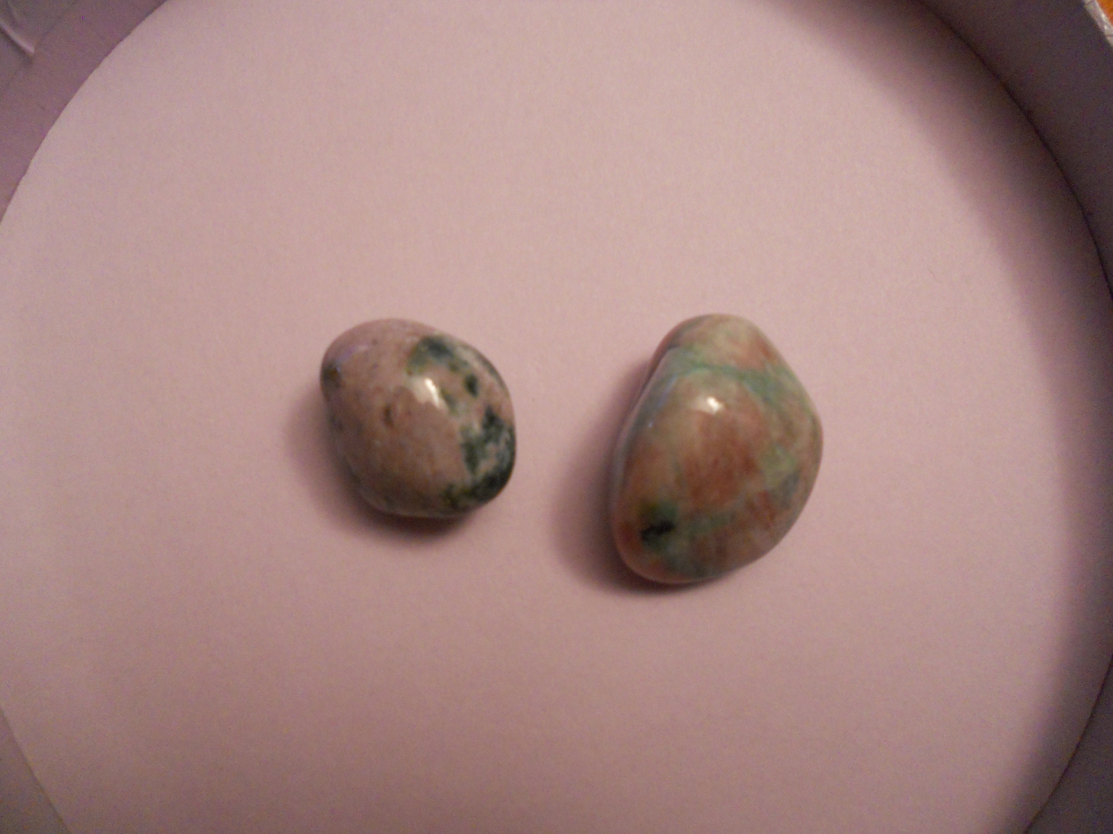 Bei dem Rosa und hellgrünen Stein war mein erster Impuls Sonnenstein. Ich weiß nicht, wie der grün sein kann, aber ich schreibe das jetzt einfach mal.