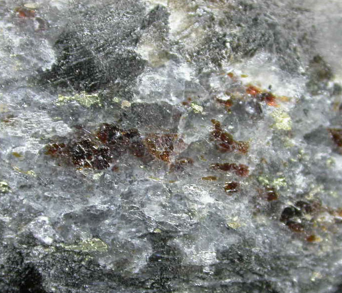 Neben diesen "Nadeln" sind auch andere Gemengeteile zu erkennen, roter Granat auf alle Fälle, dazu mittelgraue, körnige Bereiche, Pyrit, tief schwarze, körnige Bereiche, usw.stone77 hat geschrieben:...Es ist ein Anthophyllit...