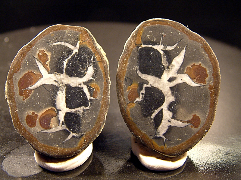 Also deine sind aus Marokko, denn von dort sind sie so dunkel und mit weißem Calcit gefüllt.
