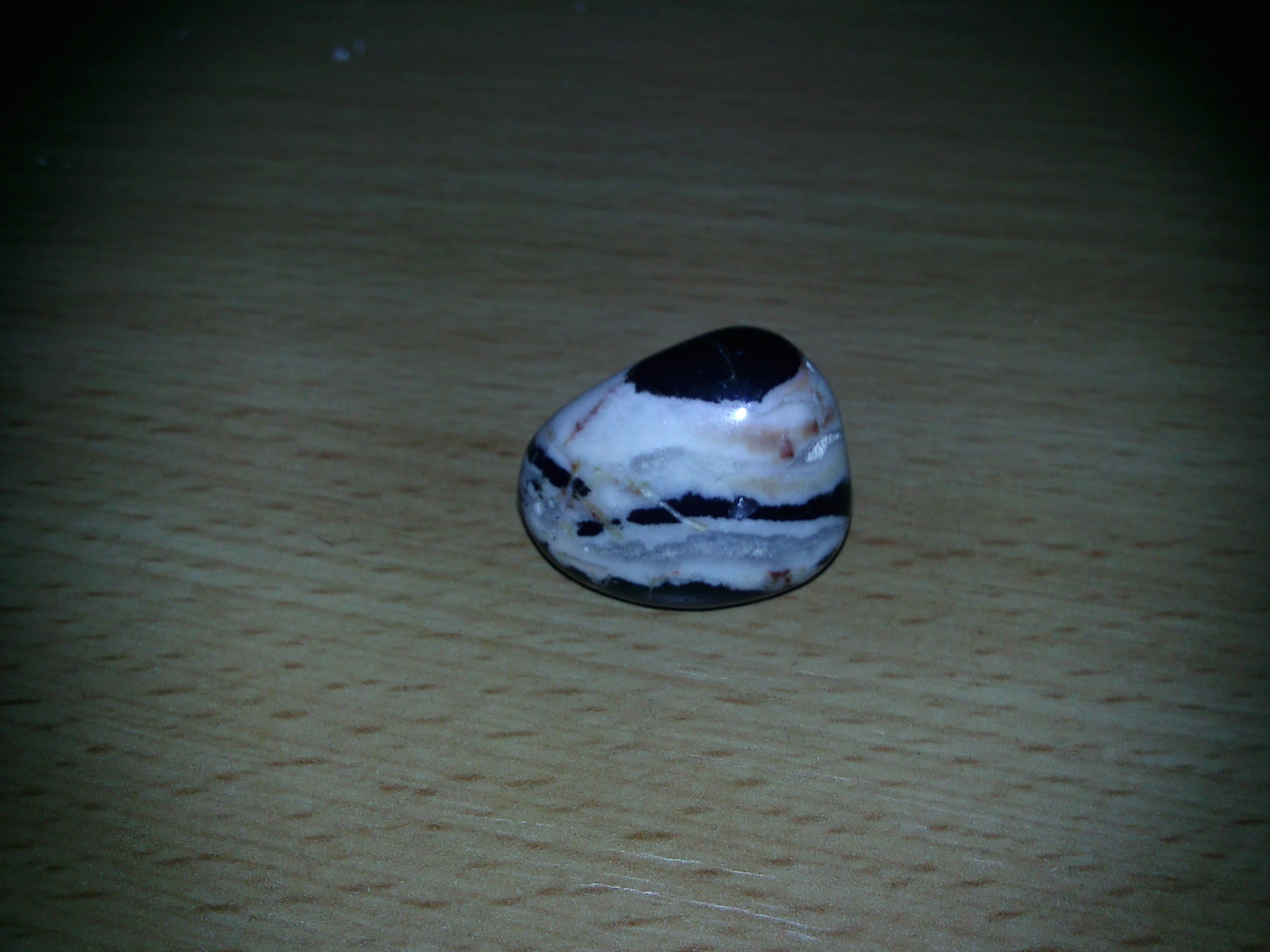 wie empfohlen nochmal ein seperates Thema zu dem mir unbekannten Stein. Hoffe, dass das Foto diesmal etwas besser gelungen ist - der leuchtende Punkt stammt leider von der Kamerabeleuchtung, sorry.