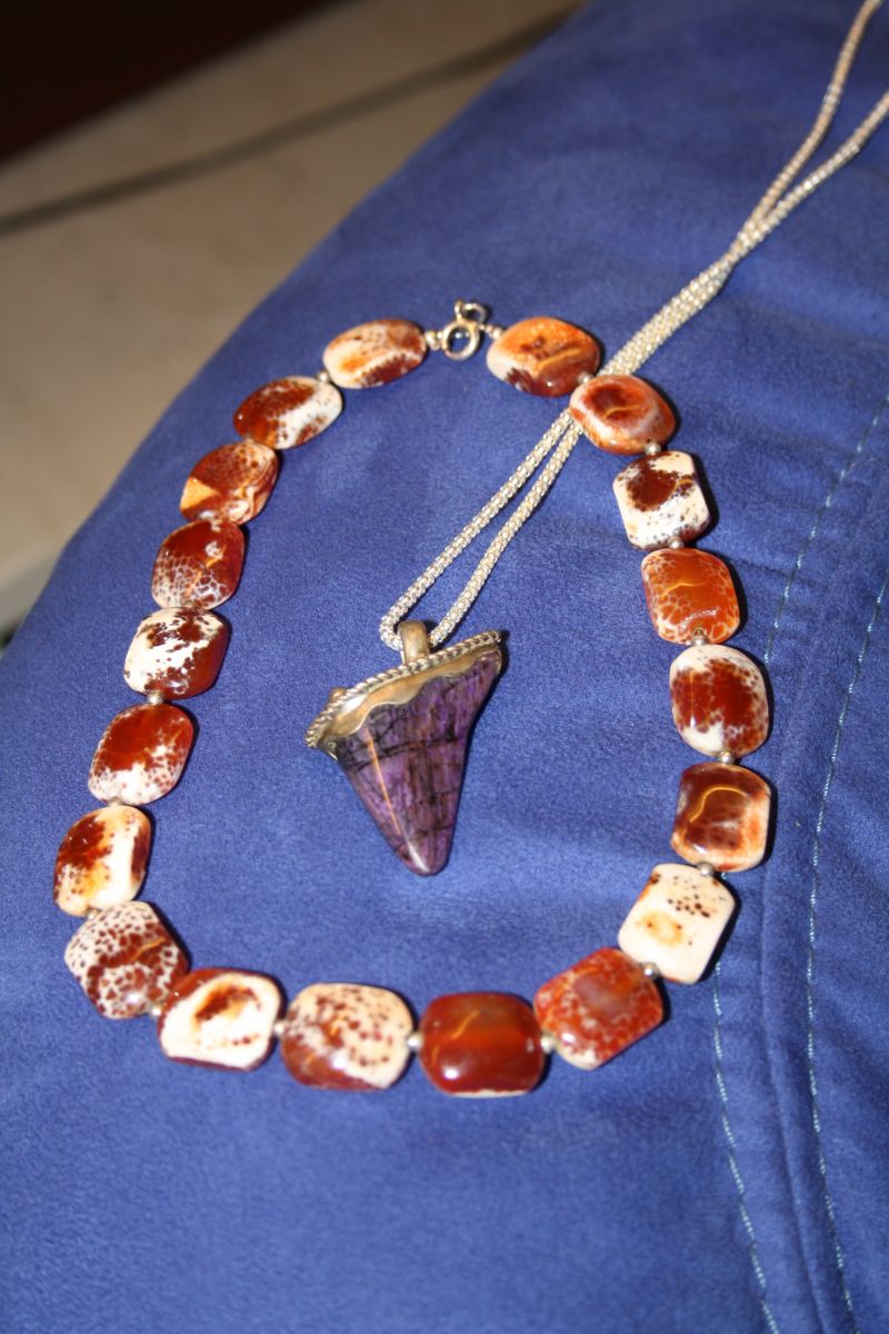 Karneol und Dumotierit... Als Anhänger um den Hals...