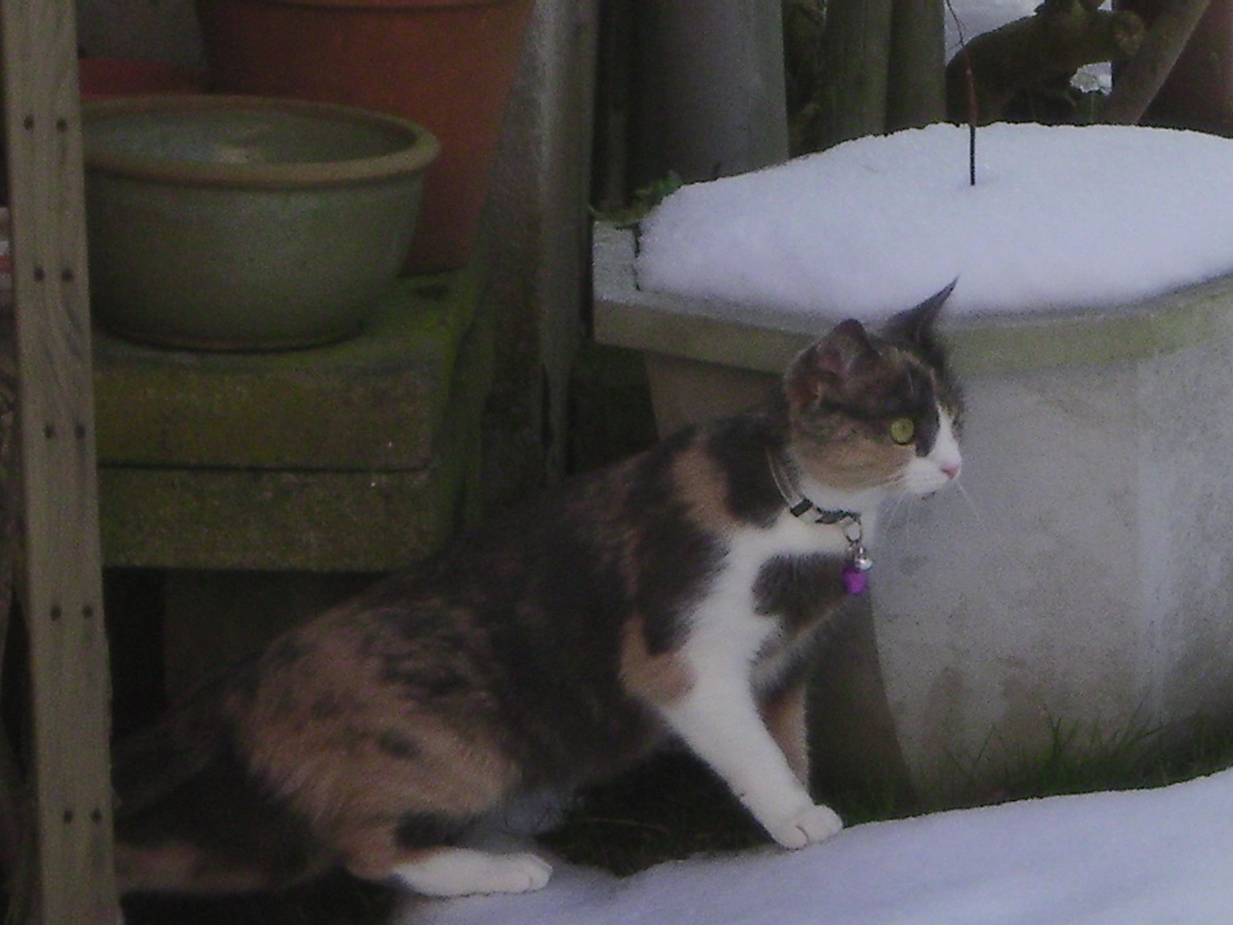 Meine Katze kommt nur "unter Aufsicht" in den Garten (hab zuviel Angst, das ihr etwas passieren könnte... :-? ). Heute hat sich meine Tochter erbarmt und ist mit ihr raus in den (verharschten) Schnee. Ich hab vom Fenster aus fotografiert....