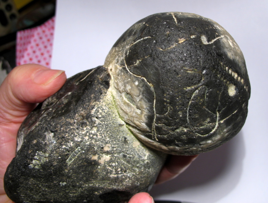 Hier habe ich einen Flint gefunden, in dem ein Seeigel noch fest eingeschlossen ist