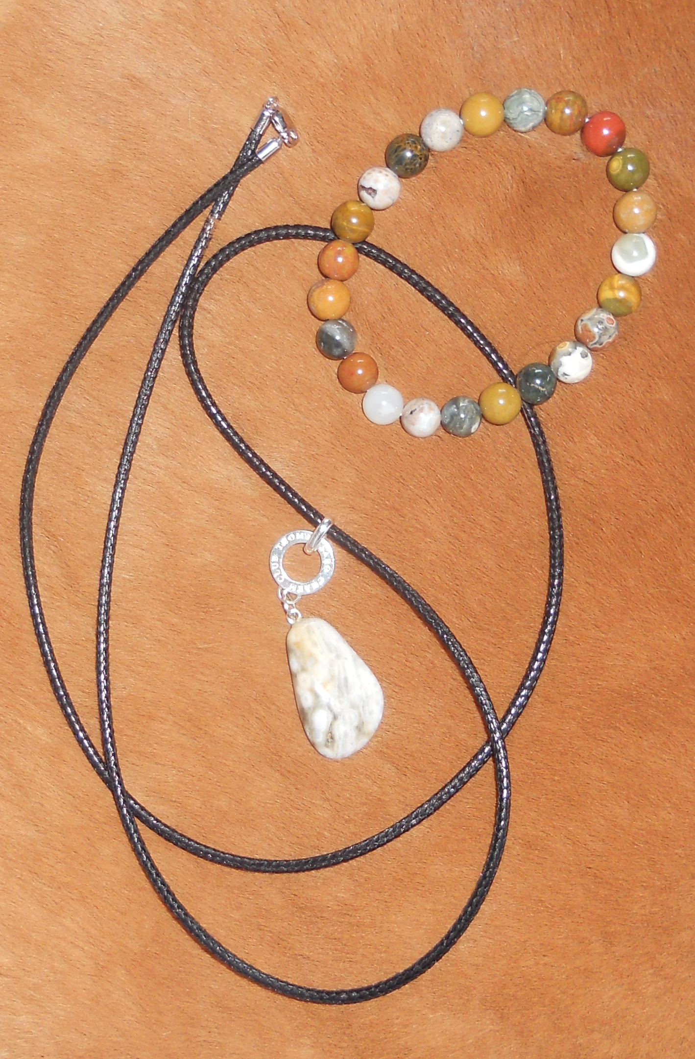 links: rechts: Ich gebe zu, beim Tragen denke ich nicht so sehr an die Heilwirkung der Steine. Dazu sind es einfach zu viele. Das Zusammenspiel der vielen Farben stimmt mich einfach fröhlich und das tut gut. Mein Sugilith unter`m T-Shirt passt auf mein seelisches Gleichgewicht auf.