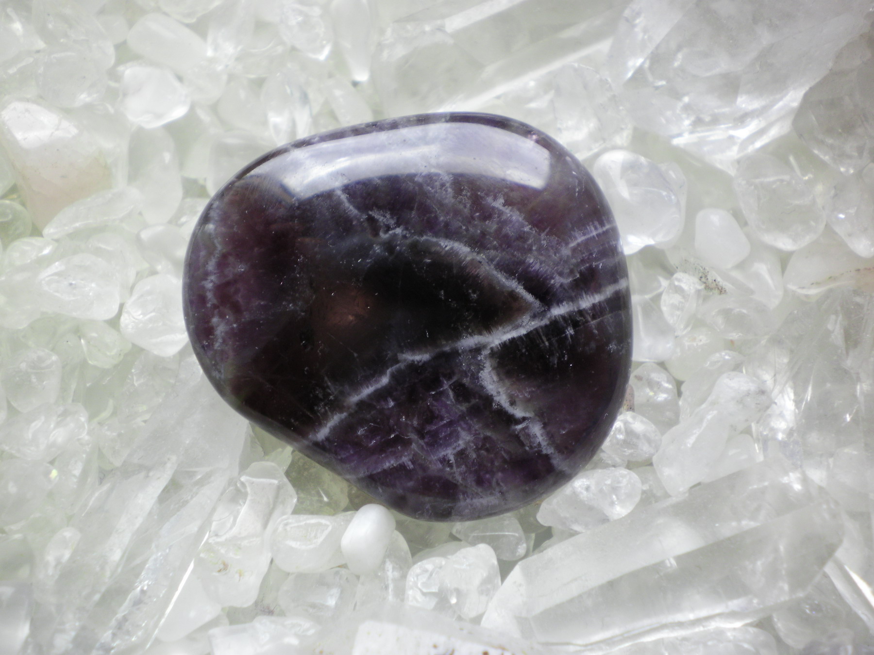 uiii, der hat aber eine tolle und auch eher ungewöhnliche zeichnung!! ..frage mich gerade, ob es nur amethyst ist, oder ob da auch ein klein wenig rauchquarz enthalten ist?? - jedenfalls freue ich mich herzlich mit dir an diesem schönen stück!