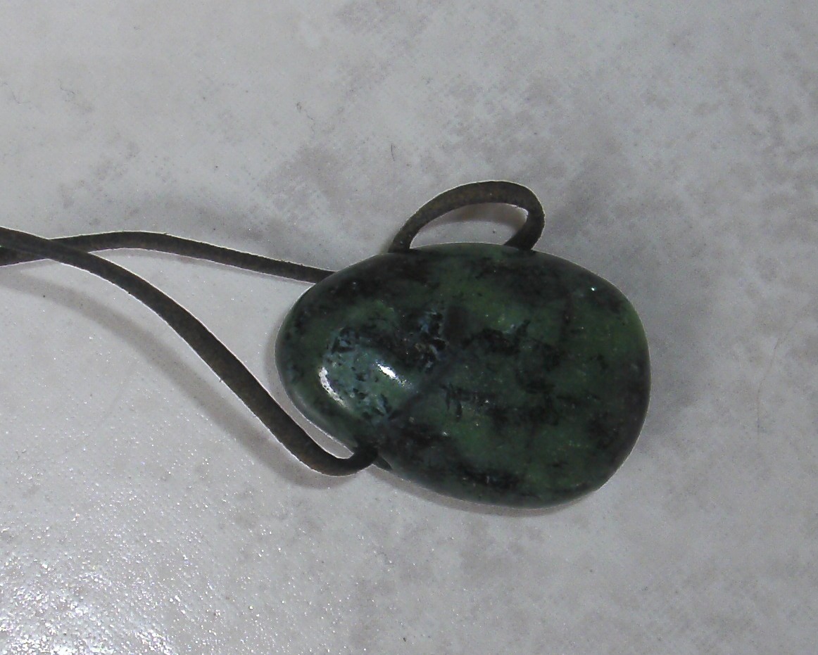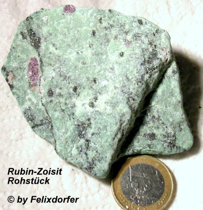 Also, für mich sieht es schon nach Zoisit aus. War mein erster Gedanke, als ich das Bild sah. Und wenn der Stein noch einen roten Fleck hat, kann das ja Rubin sein.