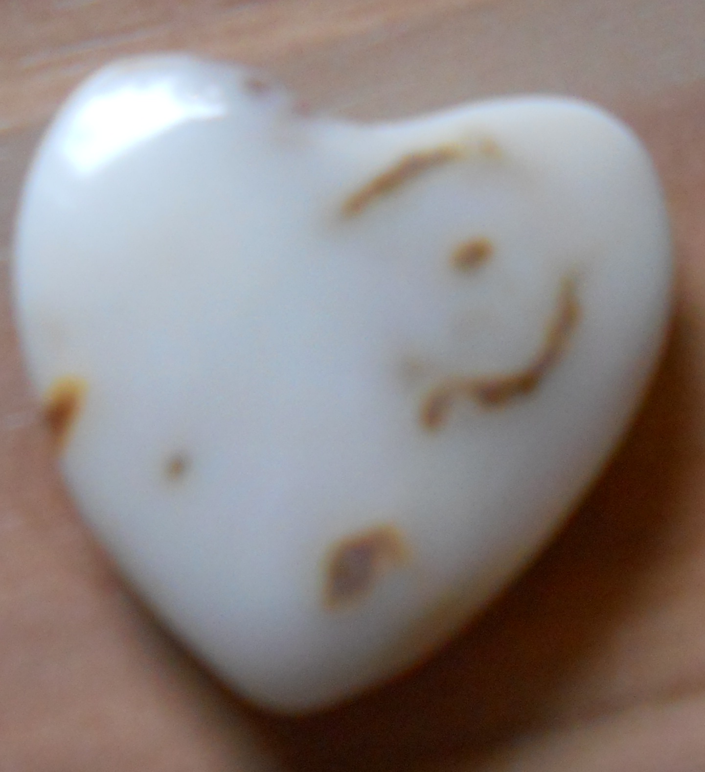 Seht ihr den kleinen braunen Fleck auf dem Stein? Das ist auf der Rückseite noch viel ausgeprägter. Morgen stelle ich mal ein Foto von der anderen Seite ein.