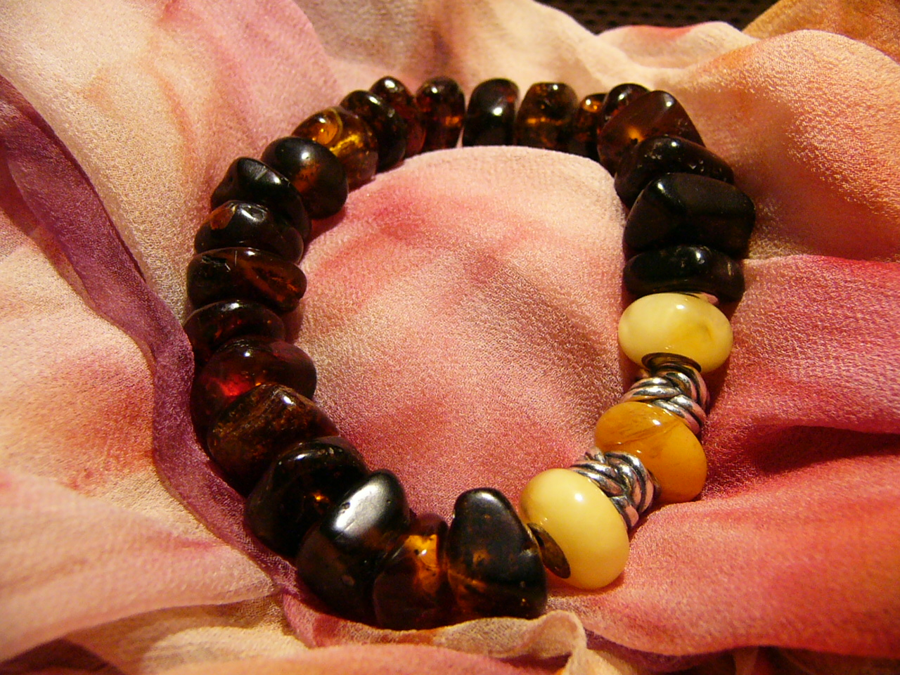 habe mir heute mal ein Bernsteinarmband aufgefädelt mit Material aus dem Fundus