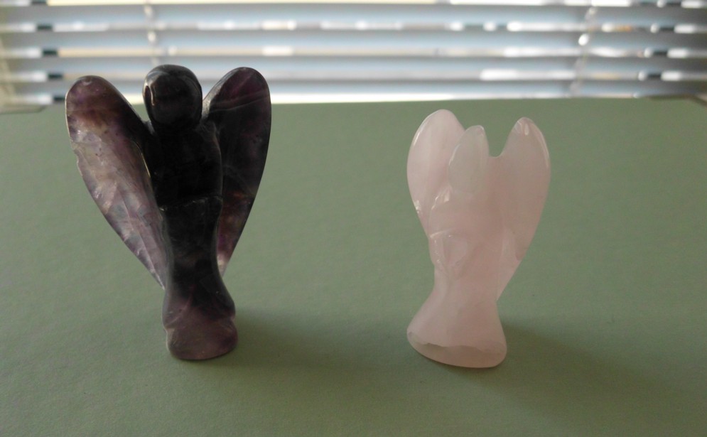 Der kleinere ist Rosenquarz, beim größeren bin ich mir nicht sicher, Amethyst oder Fluorit? ++´´ß