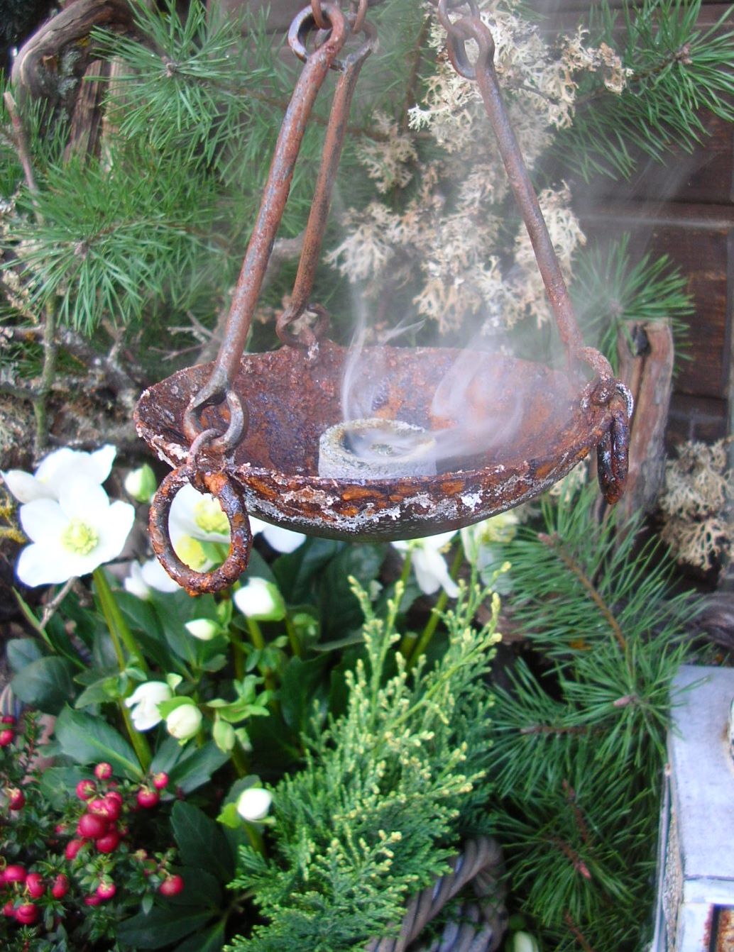 Sehe mich gerade bei einem Bekannten im Allgäu, der Schamane ist und auch draußen räuchert.