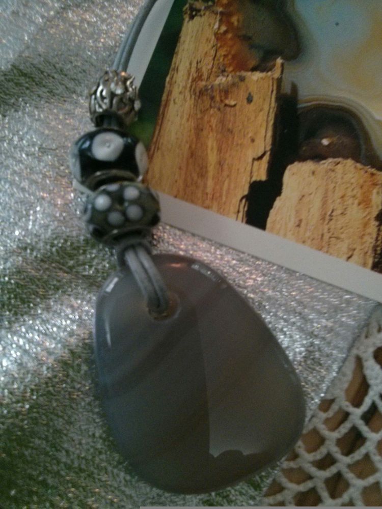 und einmal mit selbstgemachtem Anhänger (aus Modelliermasse) und Landschaftsjaspis