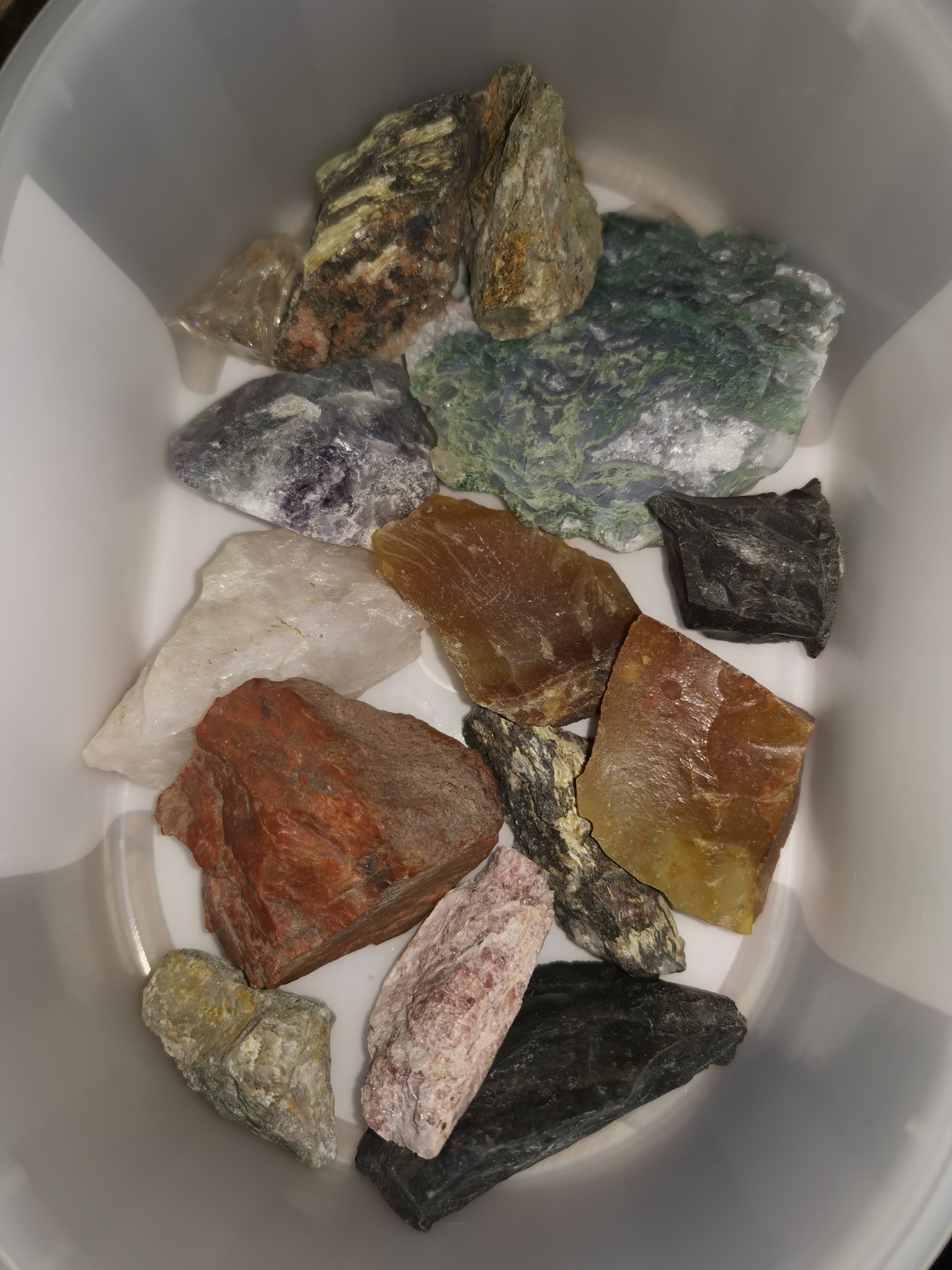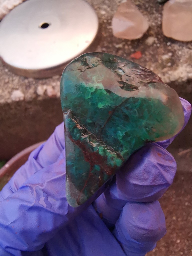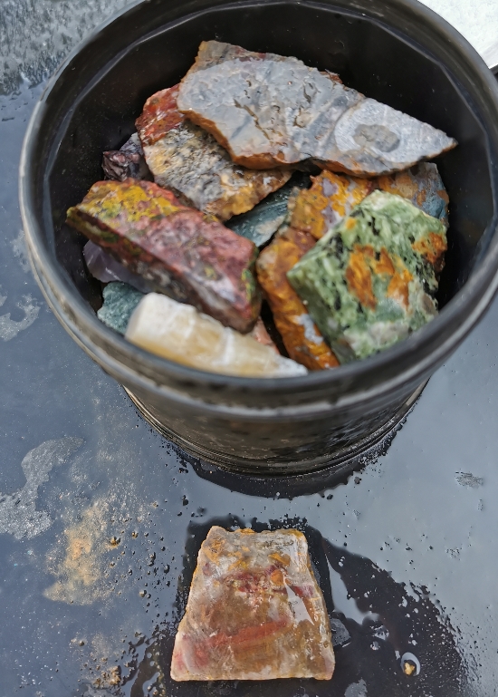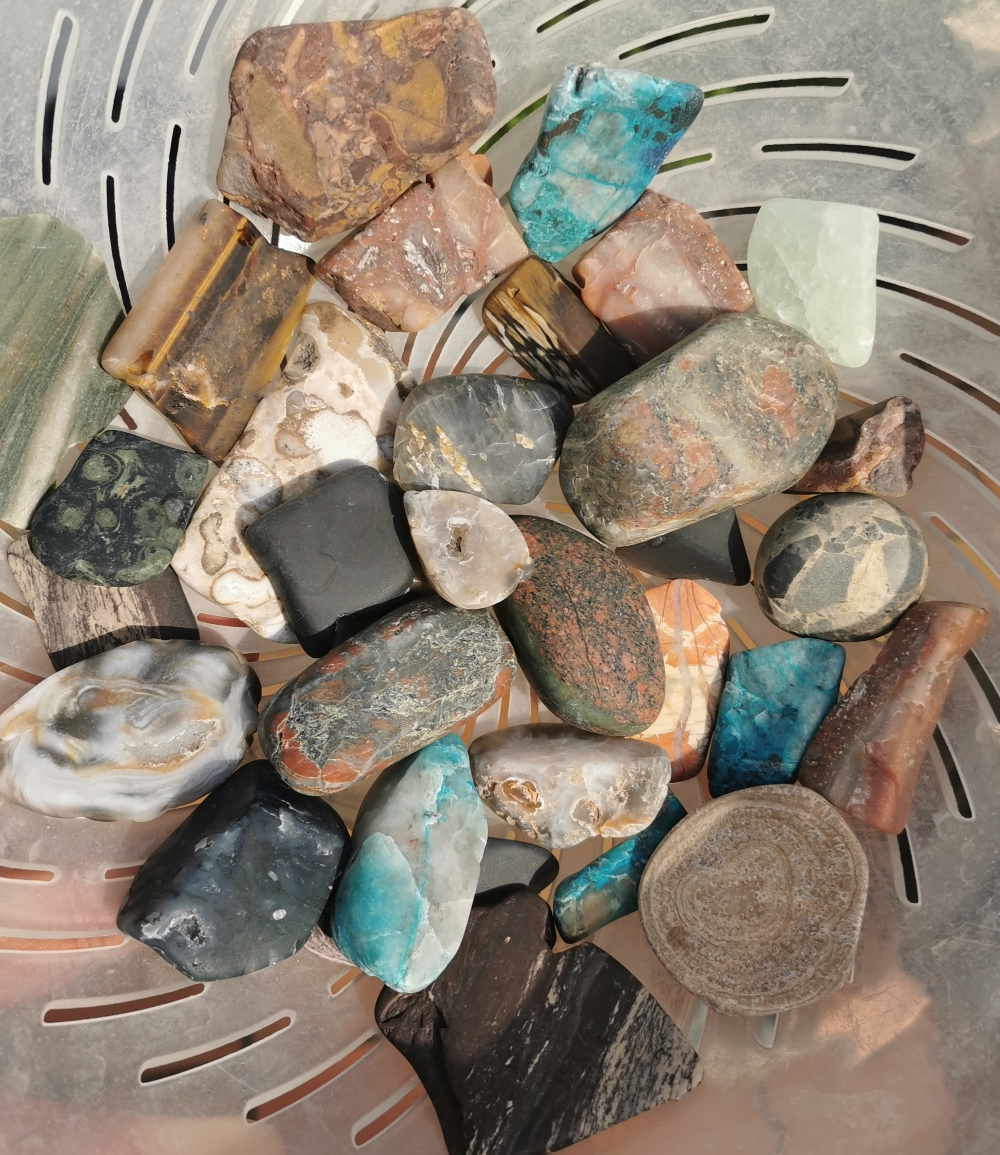 Habe dann noch ein paar größere Fundstücke (letztes Bild): Jaspis, Holz, Achat in der Trommel. Bin gespannt wie die nach 6 Tagen aussehen.