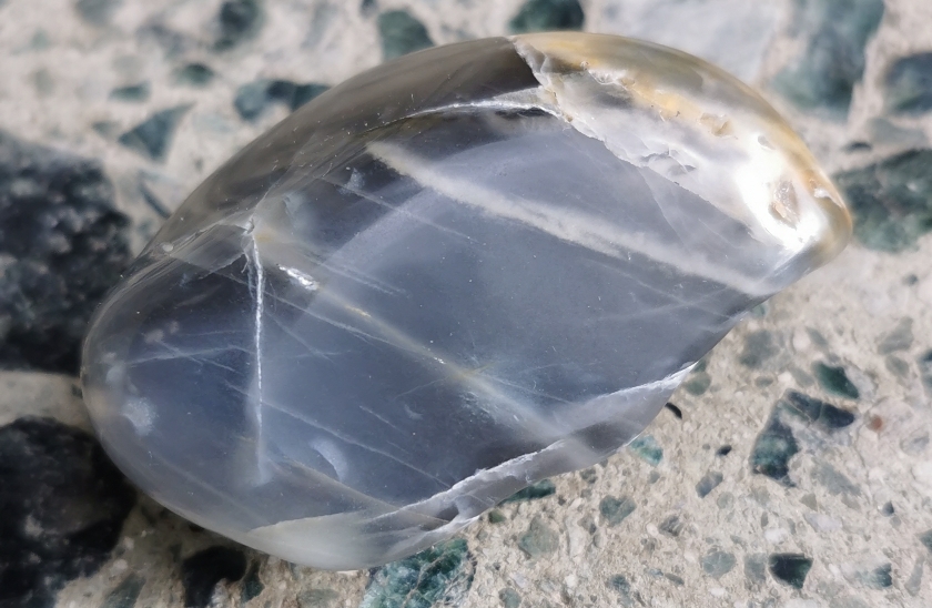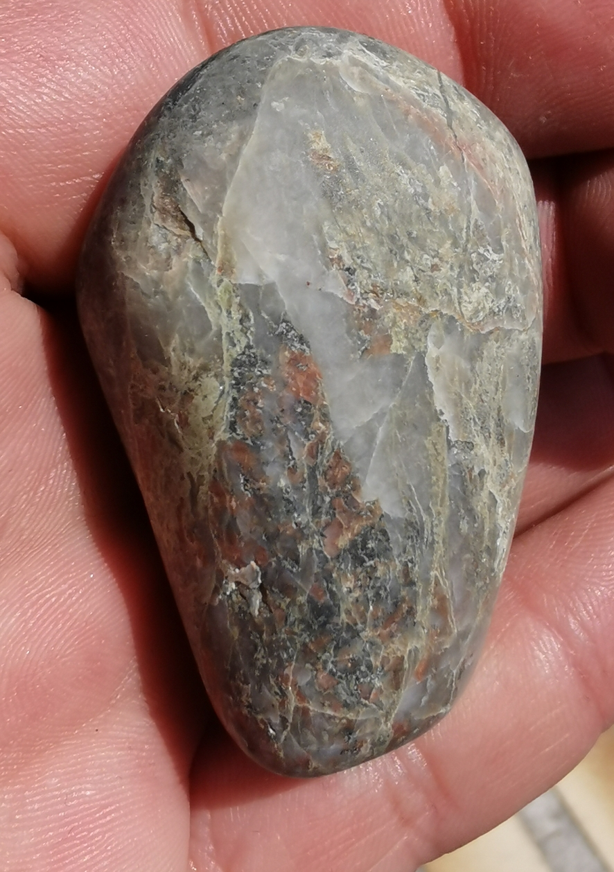 Mein letztes Bild ist allerdings ein anderer Stein. Ich hatte am Strand einen fast Ball runden Feuerstein gefunden, der wirklich nicht ansehnlich war, aber dafür ein schöner Handschmeichler.